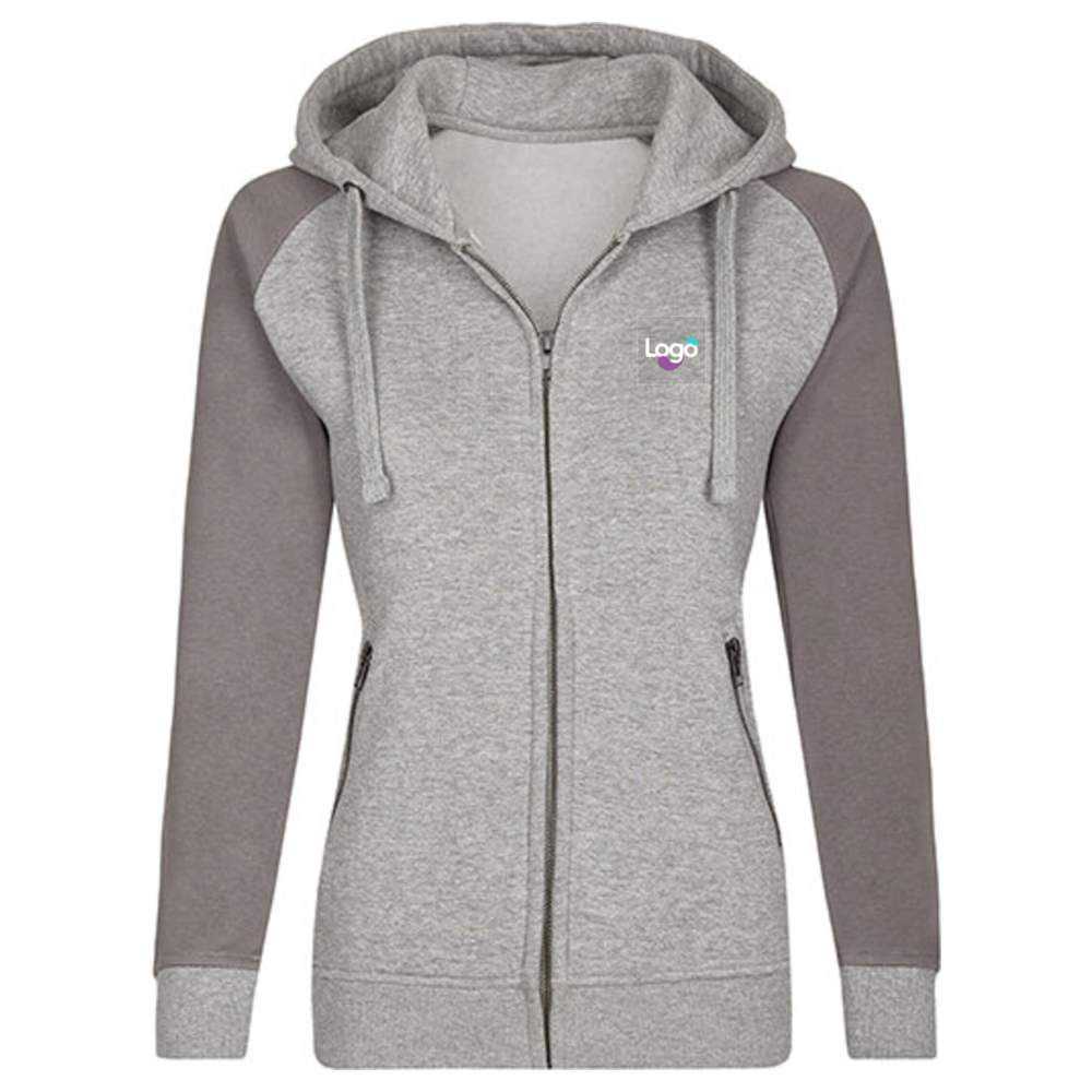 Questa felpa con zip per donna unisce comfort e stile grazie alla sua composizione in cotone ring-spun e al suo taglio moderno. È dotata di un cappuccio a doppio strato a 3 pezzi per una vestibilità più confortevole, di un cordoncino piatto dello stesso colore e di una chiusura lampo in metallo. La tasca marsupio con chiusura lampo in metallo offre uno spazio di stoccaggio pratico. Le maniche raglan e le cuciture laterali garantiscono una vestibilità ottimale. Questa felpa è anche pre-restreggiata e lavata con silicone ed enzimi per una morbidezza e durabilità aumentate. È composta di 80% cotone / 20% poliestere (Colori Heather: 60% cotone / 40% poliestere), (Heather Grey: 85% cotone / 15% viscosa). È possibile personalizzare questa felpa con ricamo con il tuo logo o il tuo visuale.