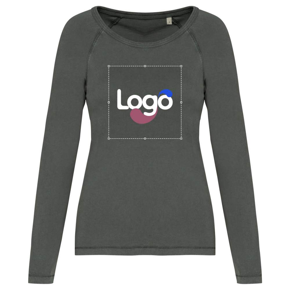 Maglietta a maniche lunghe raglan donna personalizzazione ns339 - Washed organic khaki