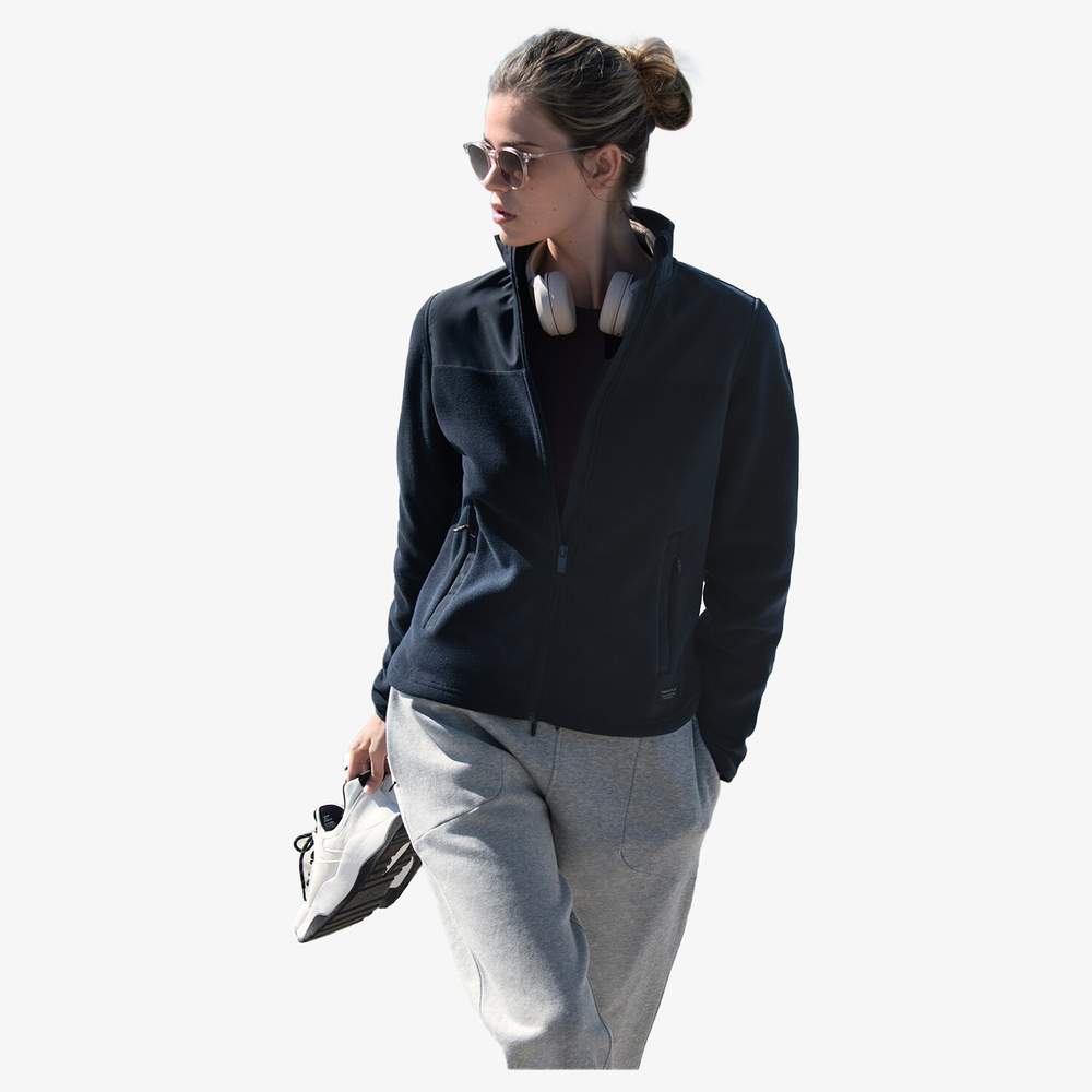 - Composizione: pile 100% poliestere riciclato; tessuto contrastante 100% poliestere (inserto, tasche e colletto esterno).