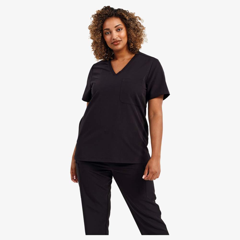 Tunica medica a maniche corte per donna, progettata per offrire comfort e funzionalità. Il suo tessuto quadri-direzionale garantisce una libertà di movimento ottimale. Questa tunica è traspirante, facilitando la regolazione termica, e si distingue per la sua facilità di manutenzione e aspetto antigruppo. Presenta una scollatura a V, una tasca piatta unica integrata con una tasca per penna, nonché pinces discrete sulla schiena e fenditure laterali per un taglio moderno e confortevole. La composizione include poliestere riciclato, contribuendo a un approccio più responsabile.