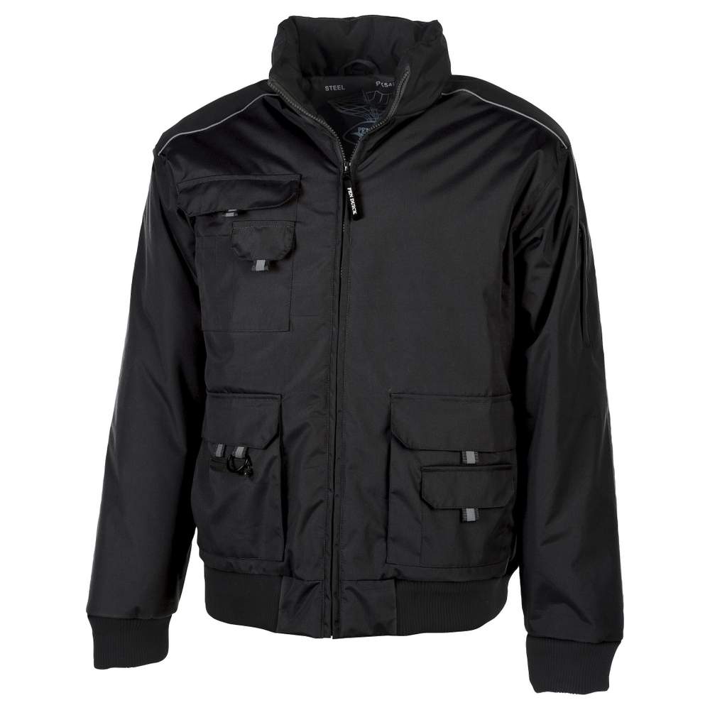 Blouson da lavoro progettato per un'uso professionale. Ha dodici tasche esterne, tra cui una tasca frontale con zip, cinque tasche con velcro, due tasche laterali e tre tasche per penne. Bande riflettenti sono presenti sulle tasche e sulle spalle per una maggiore visibilità. Un cappuccio è integrato nel collo e può essere regolato con fermagli. Il blouson è dotato di una grande cerniera. I polsini e l'orlo sono in bordino costiero. C'è anche una tasca interna con velcro. L'esterno è composto al 100% da microfibra di poliestere con rivestimento weather block®. L'interno è imbottito al 100% di poliestere.