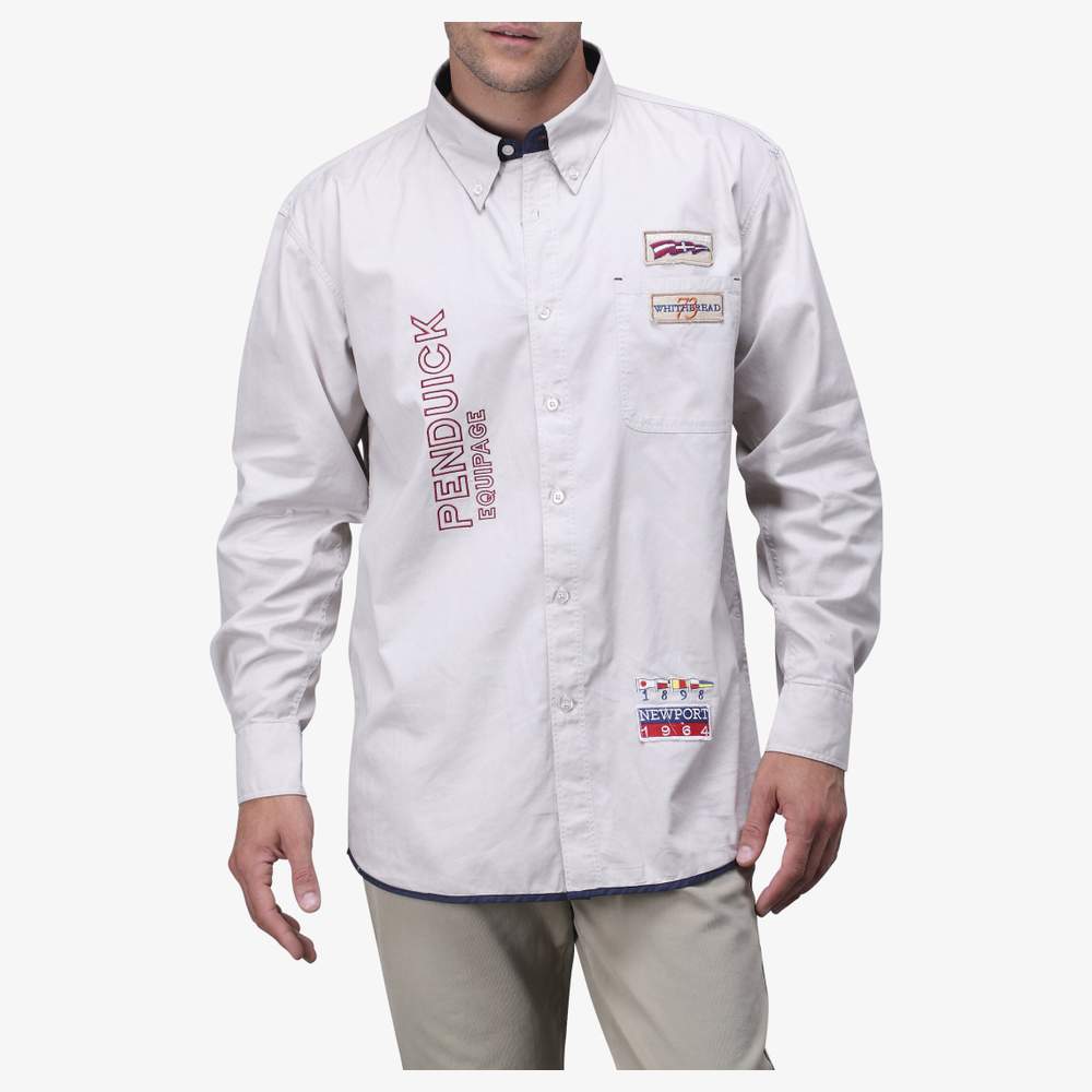 Camicia uomo realizzata in 100% cotone filato mercerizzato, offrendo comfort e durabilità apprezzabili. Questo modello presenta una silhouette classica con maniche lunghe e una tasca sul petto funzionale. L'interno del colletto è contrastante per un tocco di stile sottile. La camicia è ornata di ricami e stemmi sul davanti, sulle maniche e sulla schiena, aggiungendo una dimensione visiva interessante. Progettata per l'uso quotidiano, questa camicia unisce comfort, stile e una lavorazione di qualità.