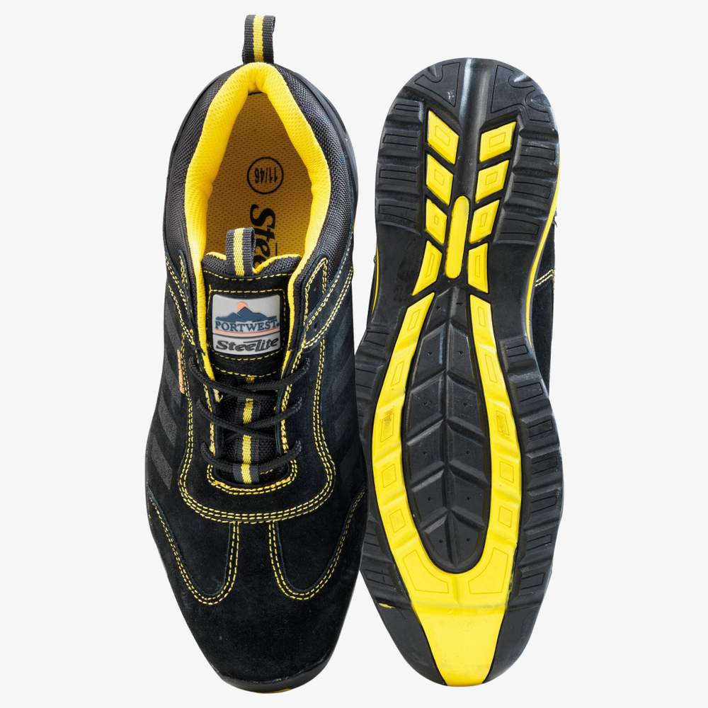 Scarpa di sicurezza Steelite™ lusun trainer progettata per offrire comfort e protezione in diversi ambienti di lavoro. La parte superiore è realizzata in pelle scamosciata, offrendo una durabilità maggiore e un'ottimale respirabilità. La suola in gomma assicura una buona aderenza su diverse superfici, essendo al contempo resistente al calore per una sicurezza accresciuta. Questa scarpa è progettata per un uso quotidiano e offre un buon supporto al piede. È adatta ai professionisti alla ricerca di una scarpa di sicurezza confortevole e performante.