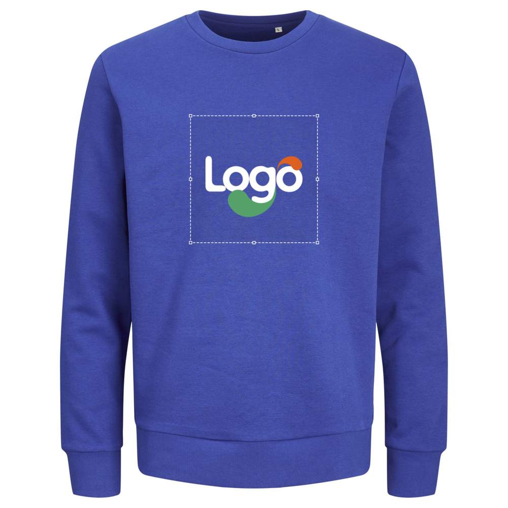 Felpa in cotone con tecnologia a 3 fili, di taglio classico unisex. Collo tondo. Polsini, vita e collo in costina. Maniche dritte. Senza etichetta del marchio sul collo per creare la tua. Questa felpa offre una superficie ideale per l'aggiunta del tuo logo o dei tuoi elementi grafici. Personalizzazione possibile in ricamo. Composizione: 80% cotone organico, 20% poliestere riciclato.