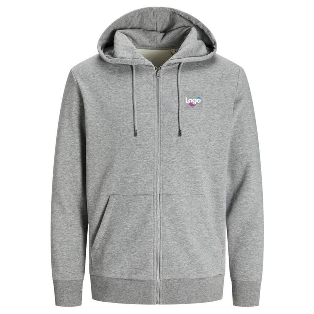 Felpa con cappuccio zip in cotone biologico jj3907 personalizzazione - Light grey melange