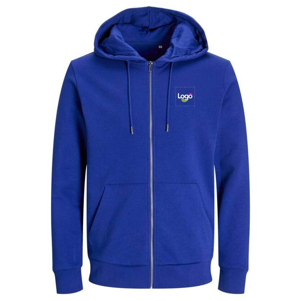 Felpa con cappuccio zip in cotone biologico jj3907 personalizzazione