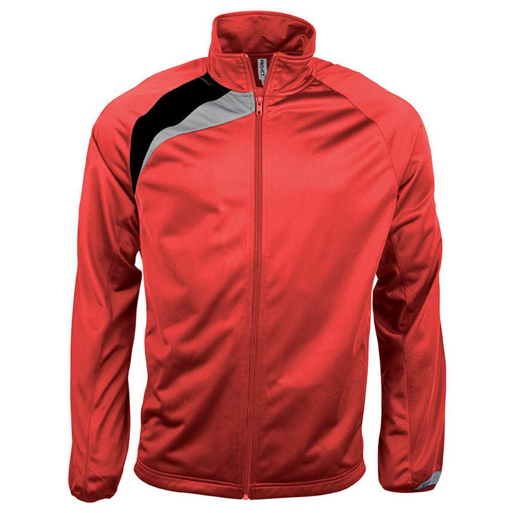 Questa giacca da tuta è realizzata in 100% poliestere polytricot, offrendo comfort e durabilità adatti a diverse attività. Presenta un taglio classico con una chiusura lampo per tutta la lunghezza, facilitando l'indossamento e la rimozione. Due tasche laterali permettono di riporre piccoli oggetti personali in tutta sicurezza. I polsini sono dotati di bande elastiche per una vestibilità ottimale e un comfort accresciuto. Questa giacca può essere abbinata ai pantaloni PA100 per creare un abbigliamento da tuta completo.