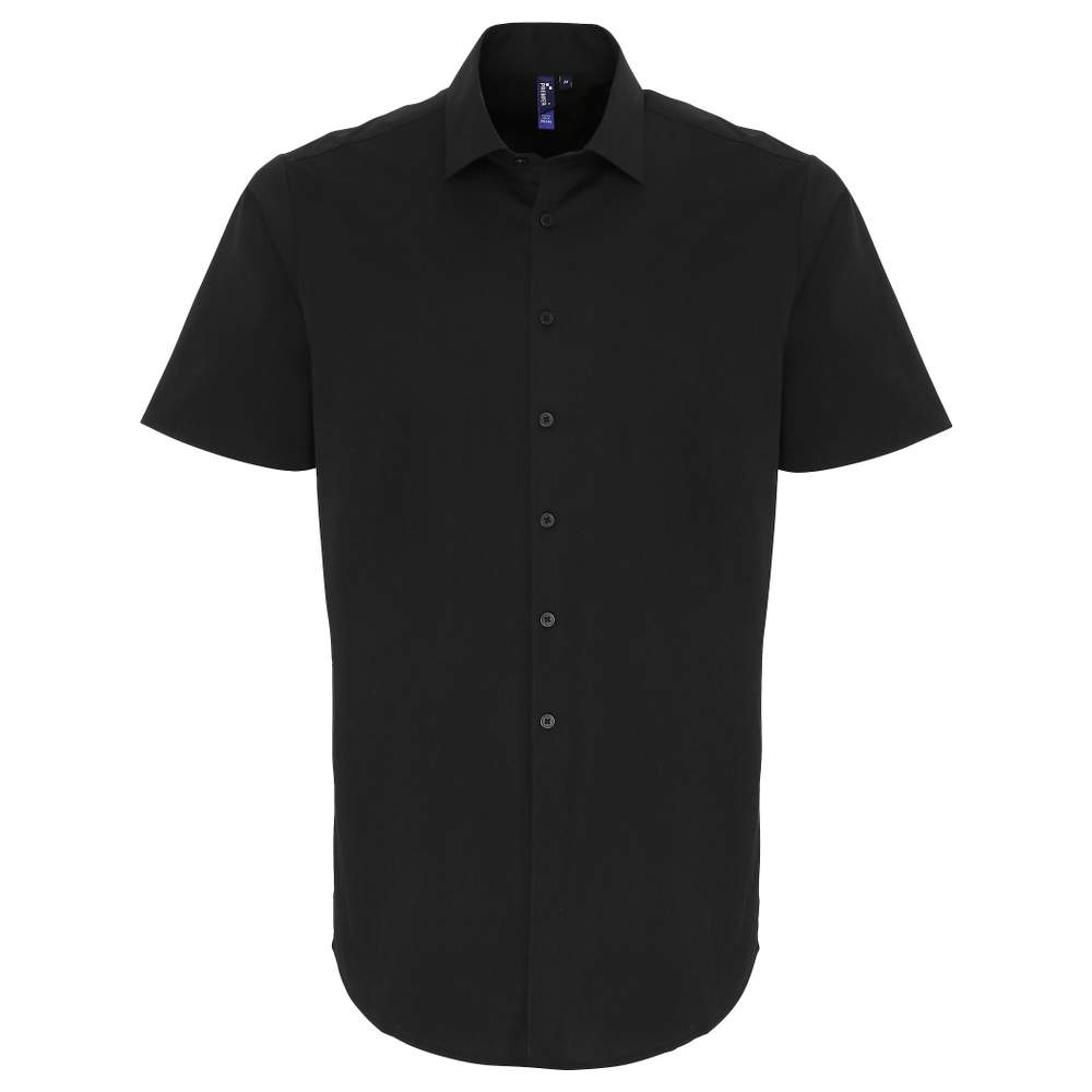 Camicia in popeline stretch a maniche corte pr246 - Black