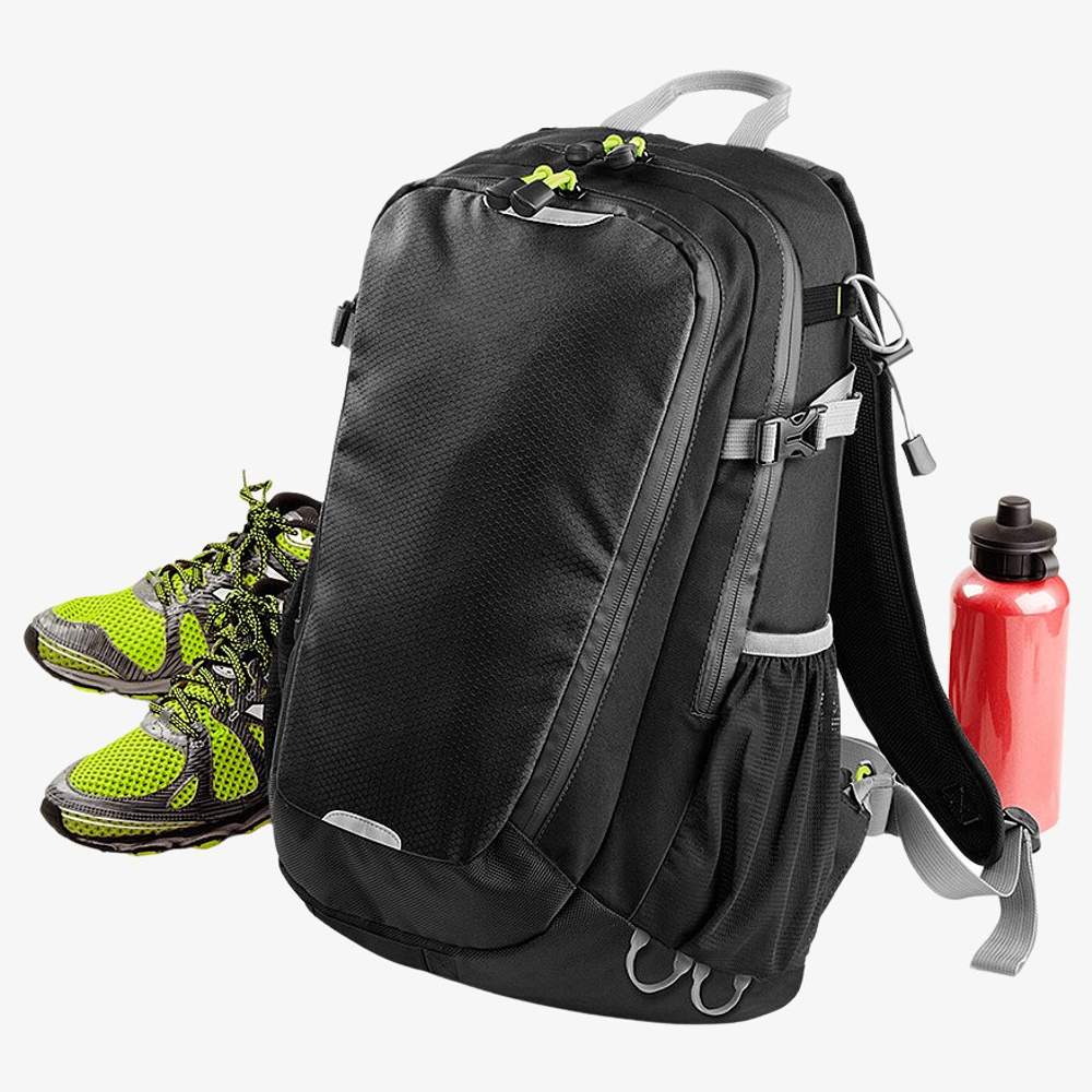Zaino da 20 litri, realizzato in poliestere a nido d'ape 600D per una maggiore resistenza. Integra una copertura antipioggia rimovibile per un'uso in condizioni meteorologiche variabili. Questo equipaggiamento è compatibile con computer portatili fino a 15,6 pollici, offrendo uno spazio sicuro per il trasporto. Gli spallacci imbottiti e regolabili garantiscono un comfort ottimale, mentre le parti riflettenti migliorano la visibilità. Le cinghie di ritenzione regolabili al livello del torace e dell'addome permettono una distribuzione equilibrata del carico. Il dorso è imbottito ed ergonomico, coperto da una rete a maglie per una migliore ventilazione. Una tasca interna a rete offre spazio di stoccaggio aggiuntivo. Lo zaino è compatibile con una borsa per l'acqua e dispone di punti di fissaggio per bastoni da trekking. Una tasca frontale con zip e un gancio di fissaggio per la luce posteriore completano le funzionalità.