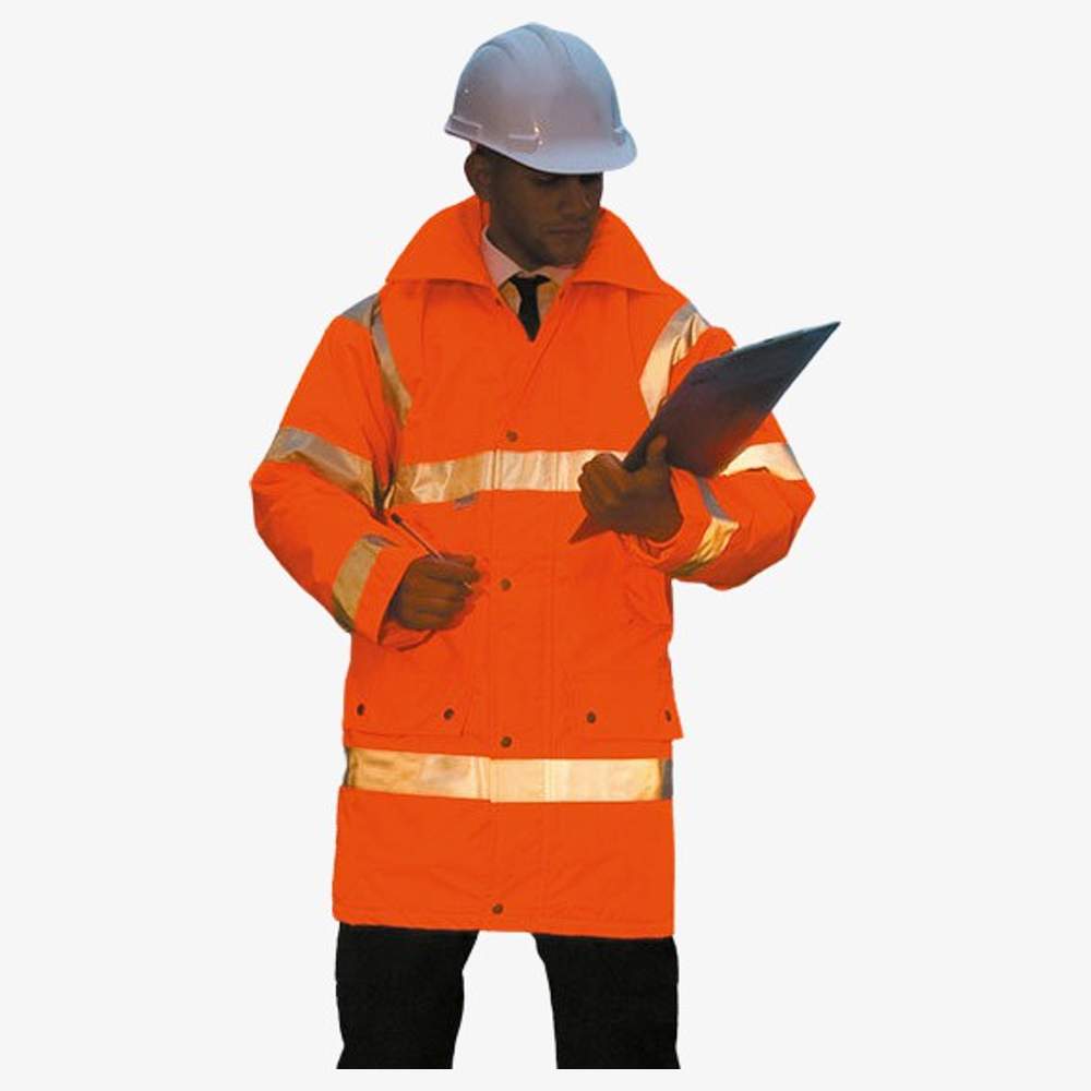 Questa giacca di sicurezza offre un'ottima visibilità grazie alle strisce riflettenti 3M e alla conformità alla norma EN 471 classe 3. Realizzata in nylon rivestito in PVC per una durabilità maggiore e dotata di una fodera in poliestere, garantisce comfort e protezione. Dispone di numerose tasche pratiche, di un cappuccio integrato e di una chiusura lampo protetta da una patta pressione. L'accesso nella parte posteriore con chiusura lampo consente una facile personalizzazione con il tuo logo o visivo. Questa giacca è ideale per i professionisti che necessitano di un equipaggiamento di sicurezza performante e personalizzabile.