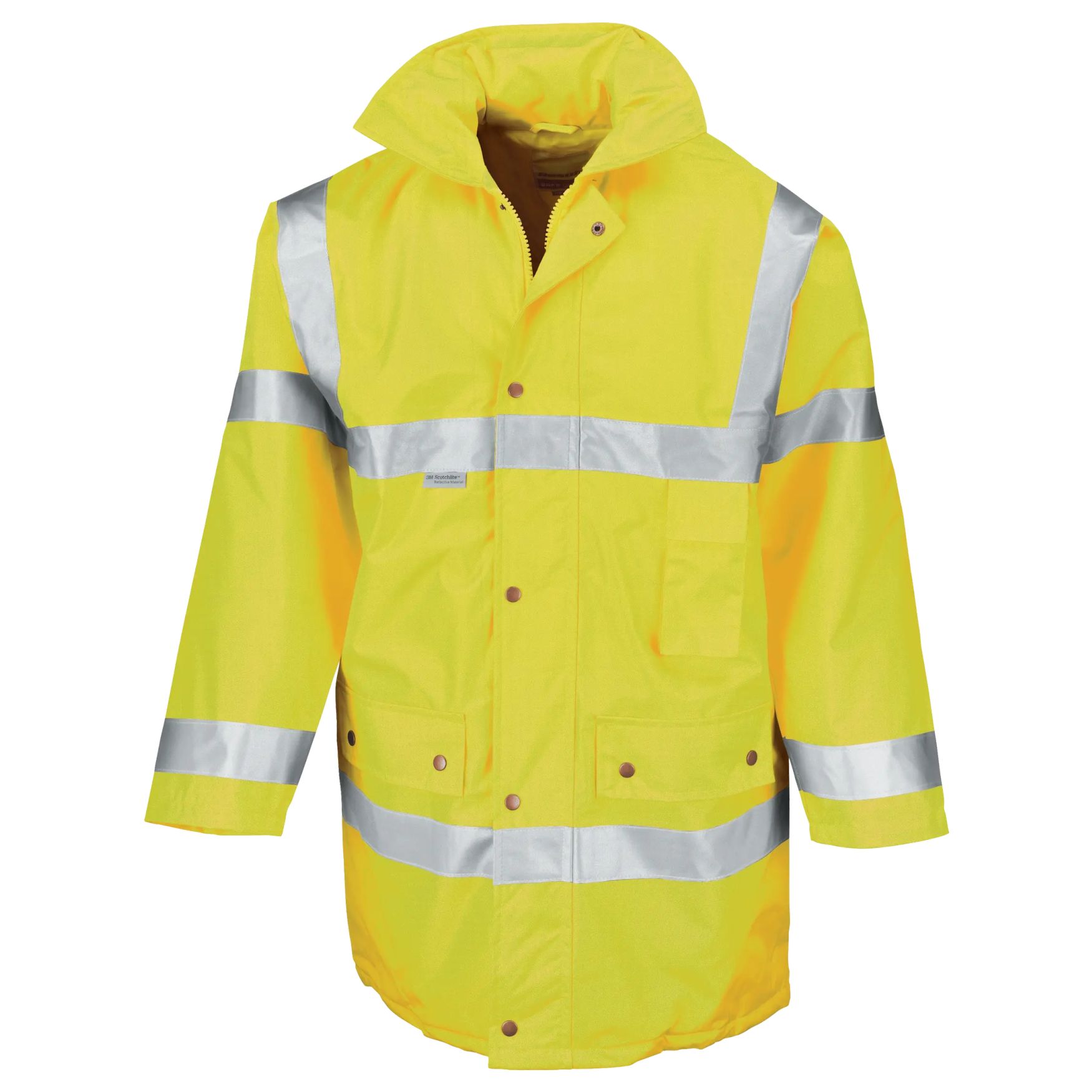 Questa giacca di sicurezza offre un'ottima visibilità grazie alle strisce riflettenti 3M e alla conformità alla norma EN 471 classe 3. Realizzata in nylon rivestito in PVC per una durabilità maggiore e dotata di una fodera in poliestere, garantisce comfort e protezione. Dispone di numerose tasche pratiche, di un cappuccio integrato e di una chiusura lampo protetta da una patta pressione. L'accesso nella parte posteriore con chiusura lampo consente una facile personalizzazione con il tuo logo o visivo. Questa giacca è ideale per i professionisti che necessitano di un equipaggiamento di sicurezza performante e personalizzabile.