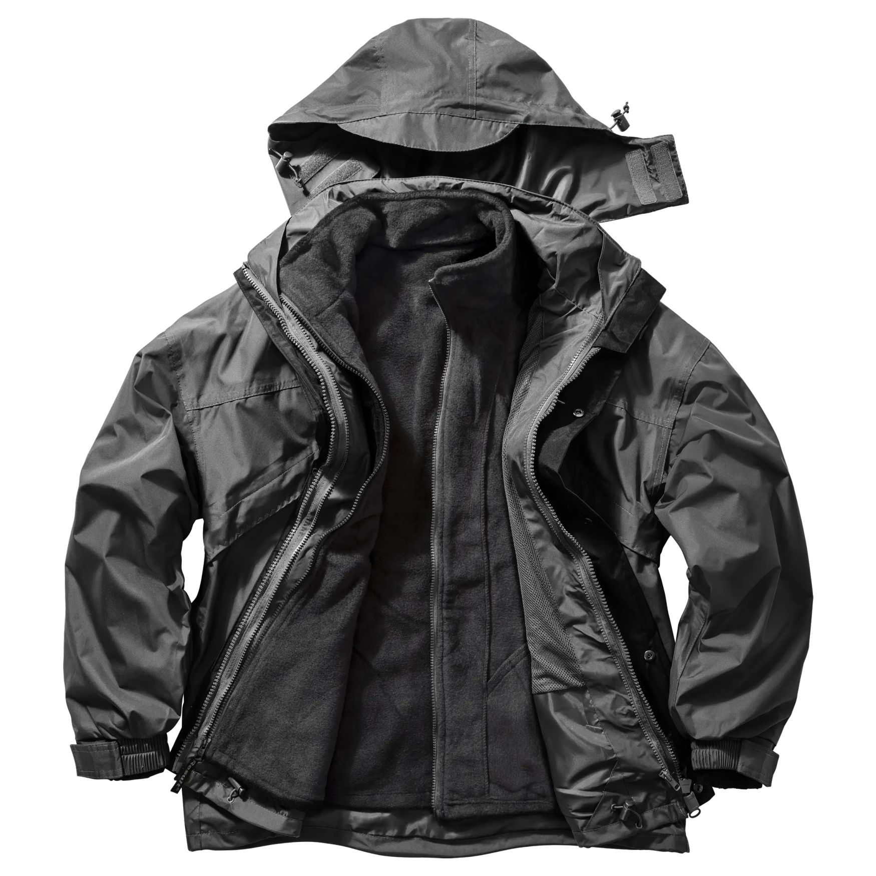 Questa giacca 3-in-1 combina una giacca esterna impermeabile con una pile staccabile per una maggiore versatilità. La giacca esterna è dotata di cuciture saldate per una protezione ottimale contro le intemperie. Ha una zip completa che permette di aprirla in alto o in basso, nonché una banda antivento con bottoni a pressione. Quattro tasche davanti offrono uno spazio di stoccaggio pratico, ciascuna dotata di zip e linguette di protezione dalla pioggia. Il cappuccio integrato nel colletto è regolabile e si fissa con una chiusura a velcro. Un cordone elastico di regolazione alla base permette di adattare la vestibilità. L'accesso sul lato sinistro del petto e nella fodera posteriore facilita le stampe e i ricami, permettendo una personalizzazione semplice. La giacca interna staccabile offre ulteriore calore quando necessario.