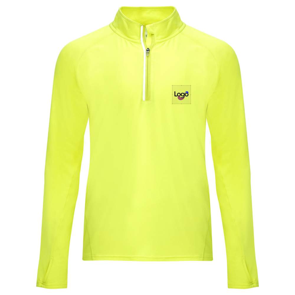 Sweat tecnica maniche lunghe raglan per uomo. Interno grattugiato. Bande di pulizia rinforzate e contrastate all'interno del collo. Mezza zip invertita tono su tono con dettaglio riflettente. Polsino con apertura per il pollice. La schiena è leggermente più lunga del davanti. Dettaglio riflettente nella schiena. Etichetta staccabile. Tessuto tecnico. Composizione : 94% poliestere, 6% Elastam. Questo sweat offre un comfort ottimale per le vostre attività sportive o giornate rilassate. È anche ideale per gli eventi aziendali grazie alla possibilità di personalizzazione in ricamo.