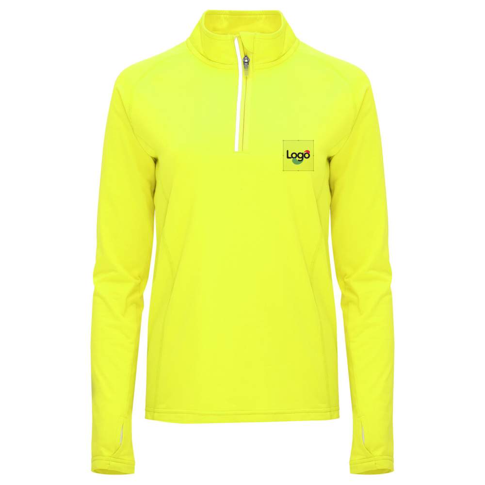 Sweat tecnica a maniche lunghe raglan per donna. Interno grattugiato per un maggiore comfort. Striscia di pulizia rinforzata e contrastata all'interno del collo. Cerniera lampo invertita tono su tono con dettaglio riflettente per una visibilità aumentata. Polsino con apertura per il pollice per una vestibilità ottimale. Il dietro è leggermente più lungo del davanti per una migliore protezione. Dettaglio riflettente nella schiena per una maggiore sicurezza. Etichetta staccabile per un comfort personalizzato. Tessuto tecnico Duo concept che offre performance e comfort. Possibilità di personalizzazione in ricamo per mostrare il vostro logo o il vostro visuale.