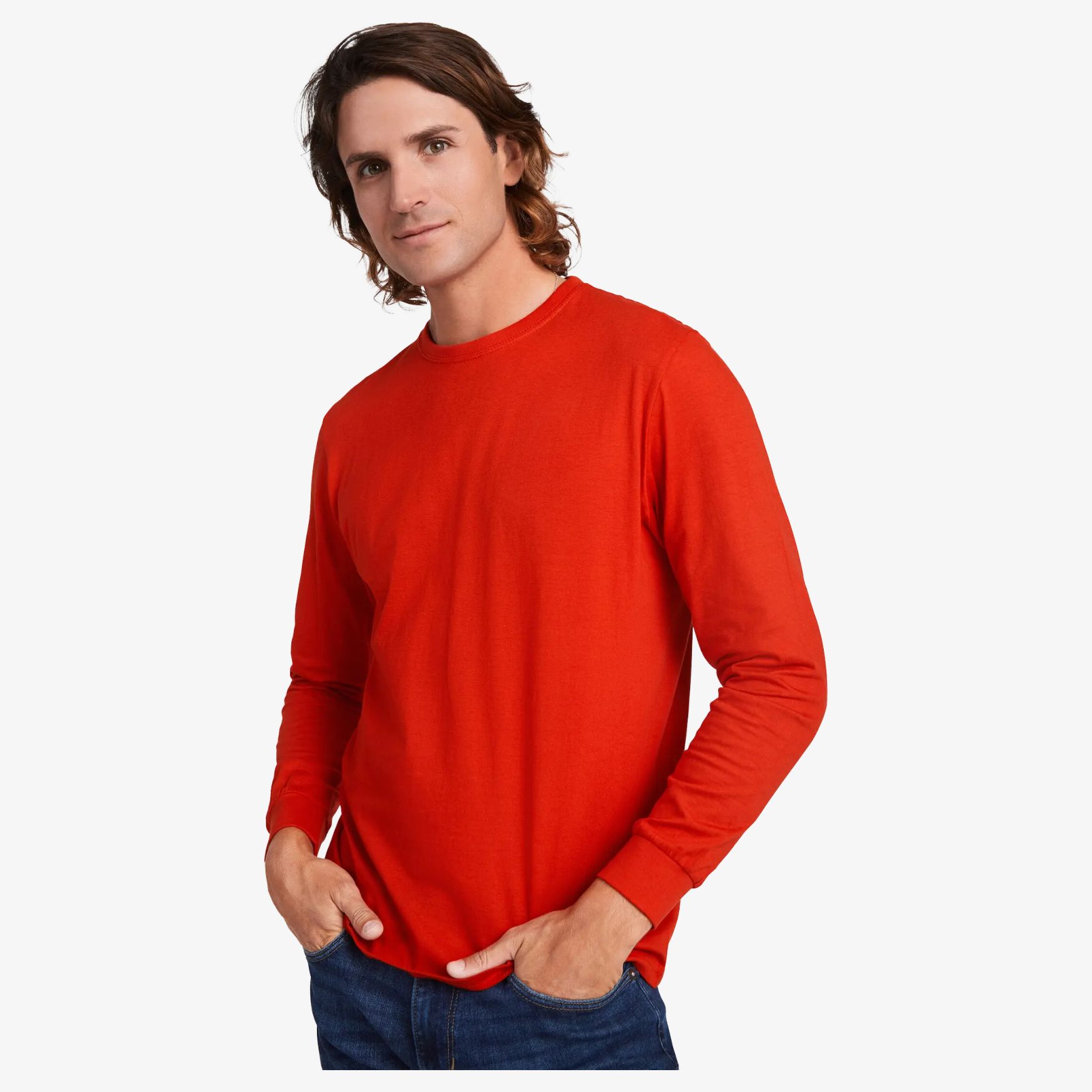 Maglia a maniche lunghe, realizzata in tessuto tubolare con un colletto tondo a quattro spessori e polsini in costa 1x1. Include una banda di pulizia a livello del collo e delle spalle, ed è dotata di un'etichetta staccabile.