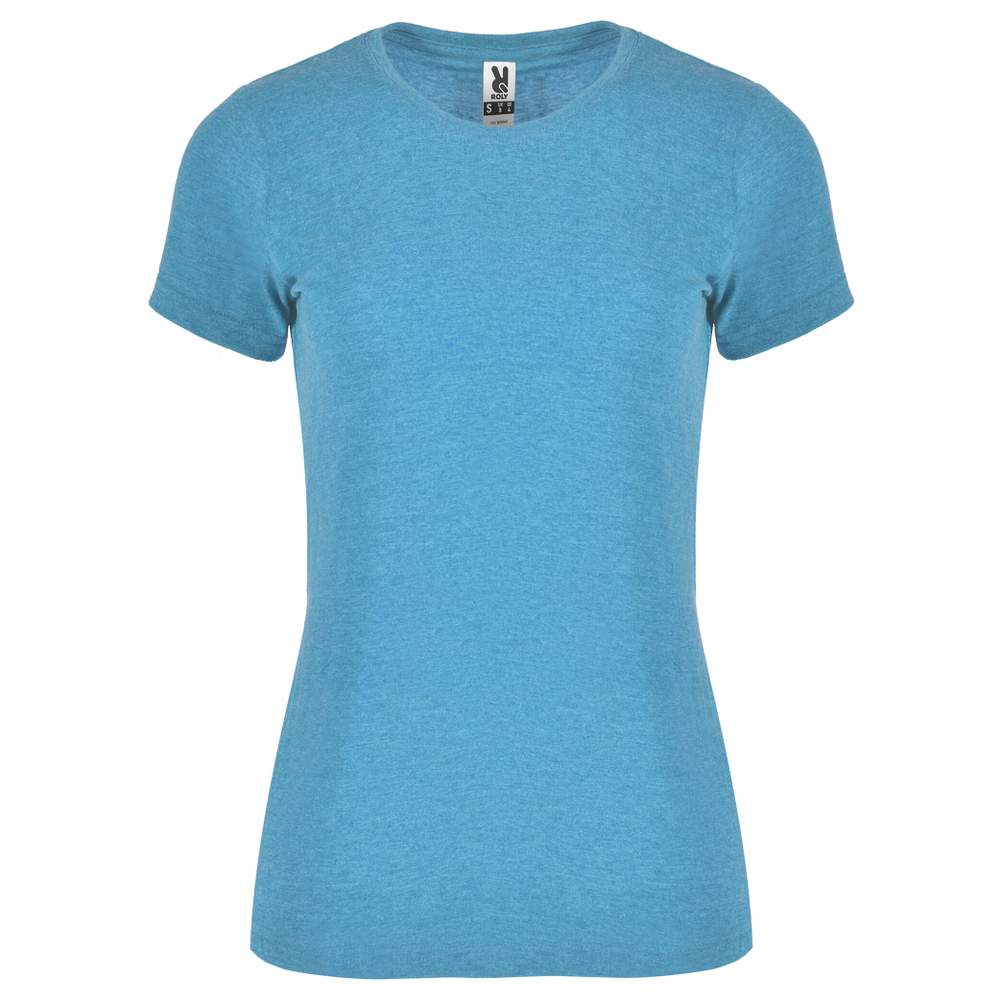 T-shirt maniche corte per donna in tessuto chiné. Collo rotondo in costa 1x1 con banda di pulizia rinforzata all'interno. Etichetta staccabile. Duo concept.