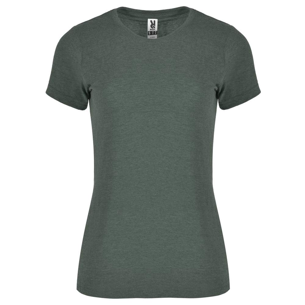 T-shirt maniche corte per donna in tessuto chiné. Collo rotondo in costa 1x1 con banda di pulizia rinforzata all'interno. Etichetta staccabile. Duo concept.