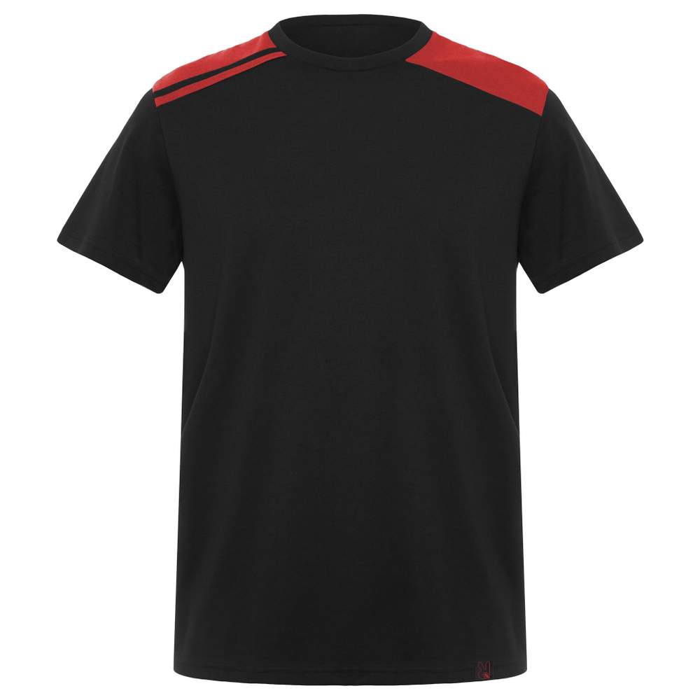 T-shirt a maniche corte dai colori combinati. Collo tondo con cuciture interne contrastanti. Spalle e dettagli contrastanti. Etichetta staccabile. Composizione : 60% cotone, 40% poliestere, jersey semplice.