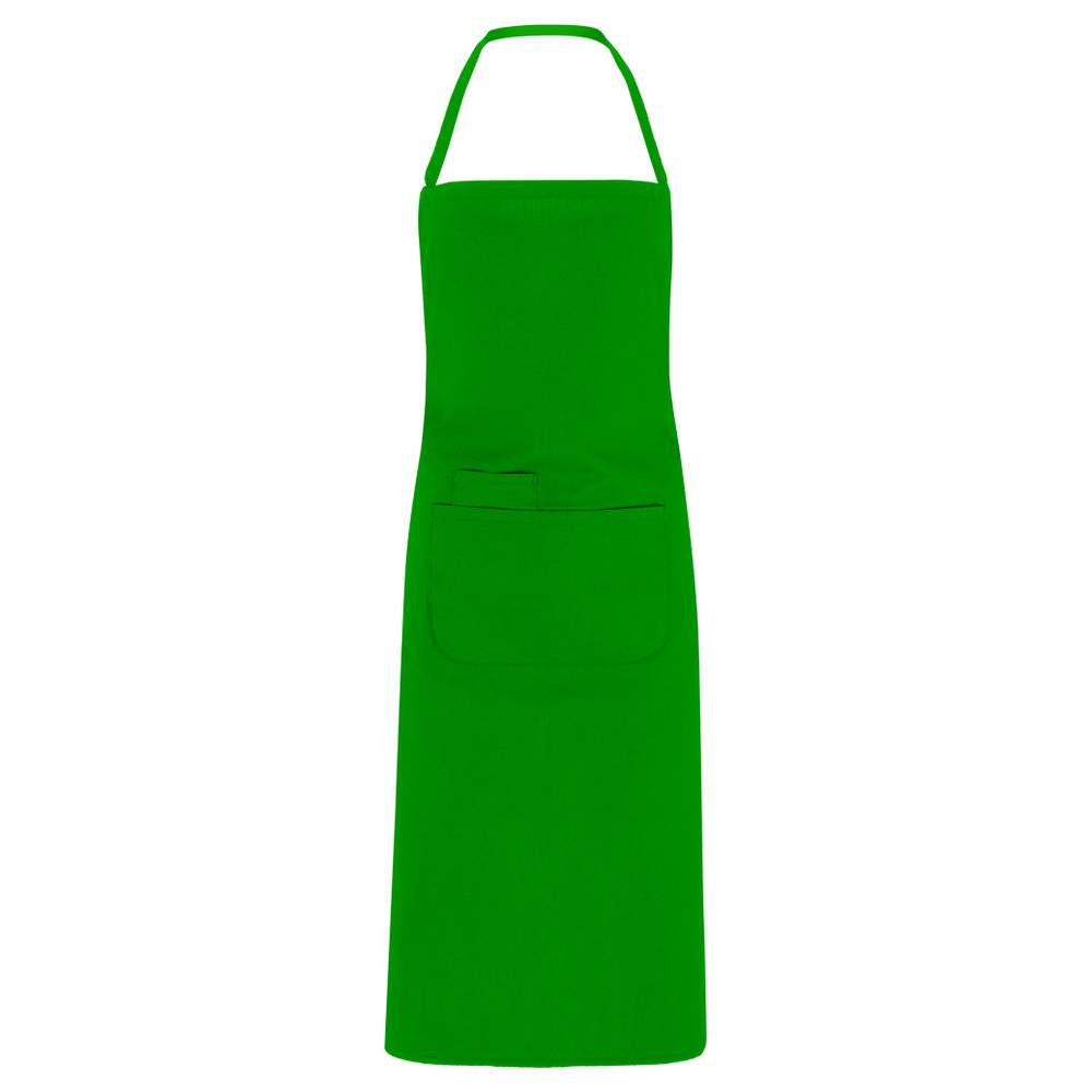 Grembiule lungo con doppia tasca frontale e bretelle abbinate. Etichetta staccabile. Composizione: 90% poliestere, 10% cotone