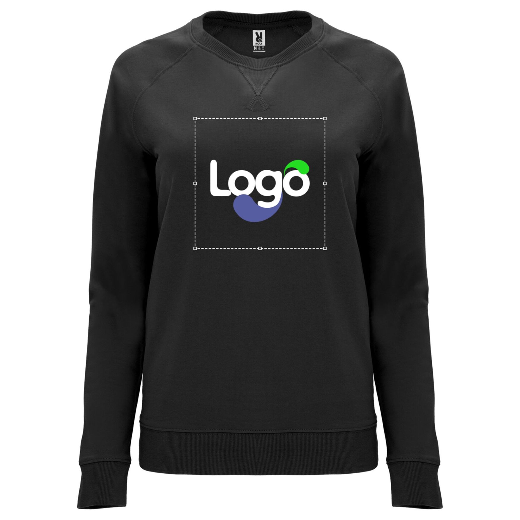 Felpa donna in cotone maniche lunghe raglan. Collo, polsini e cinturino in costina 2x1. Collo tondo con banda di pulizia rinforzata all'interno. Dettaglio centrale di cuciture incrociate con costina 2x1. Etichetta staccabile. Duo concept. Composizione: 100% cotone (tranne colore grigio chiné: 85% cotone, 15% viscosa), maglia felpata non ruvida. Questa felpa è personalizzabile con ricamo per una comunicazione efficace del vostro marchio.