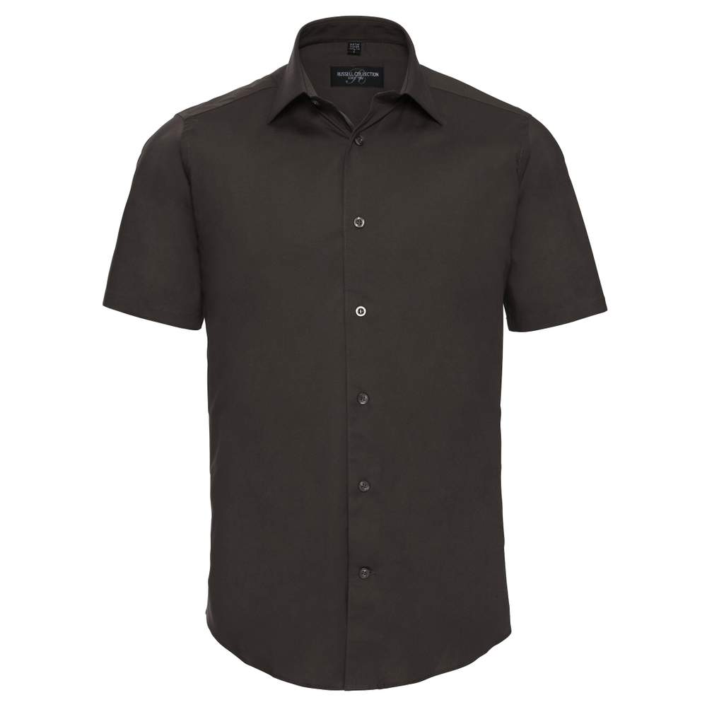 Camicia a maniche corte adattata e stretch r-947m-0 - Chocolate