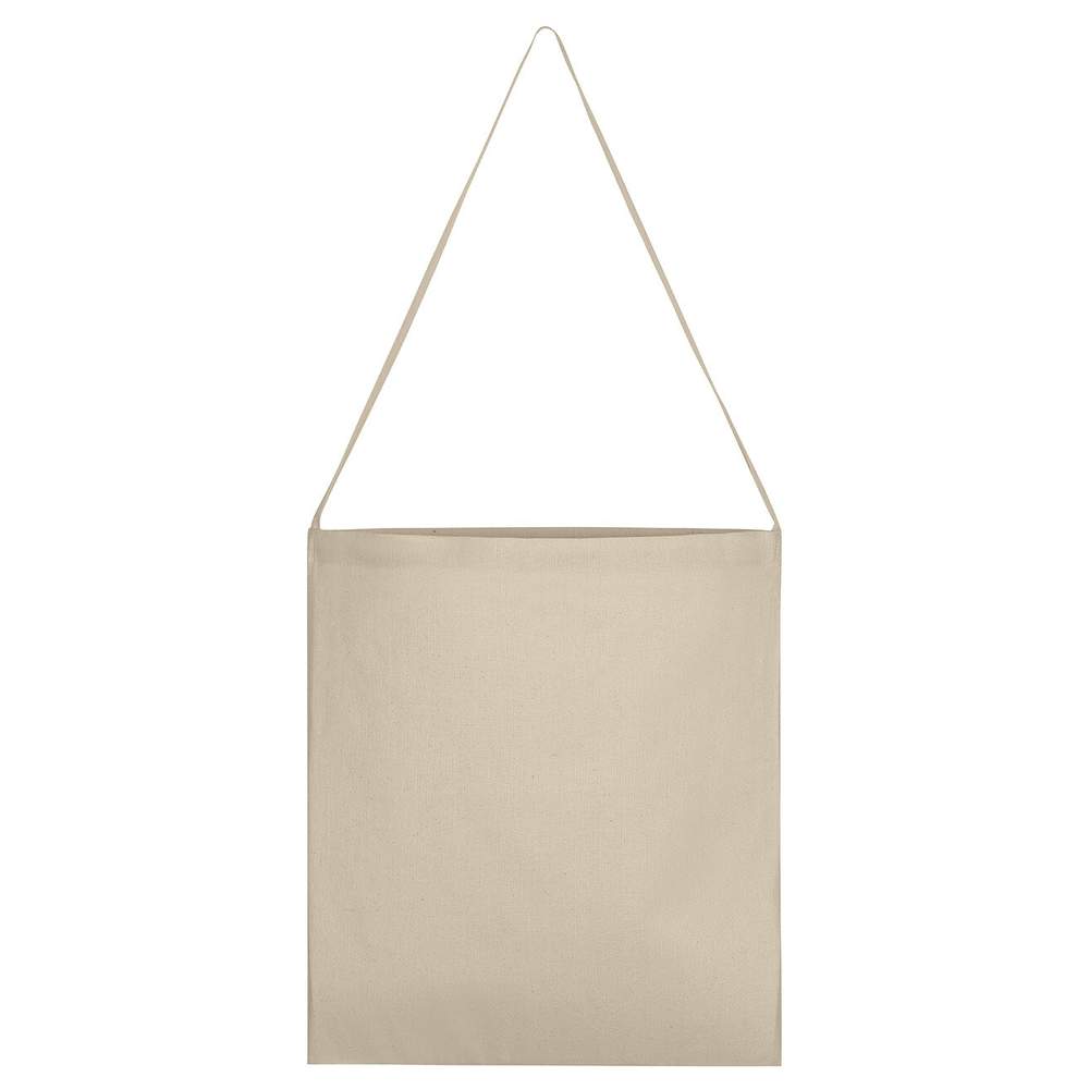 Borsa della spesa in cotone con manico unico. Versione originale del tote bag classico, questo sacchetto è polivalente ed è solido e duraturo grazie al punto a croce sul manico. Cuciture interne con punto di sorgeto. Manico lungo: circa 85 cm. Dimensioni: 38 x 42 cm. Composizione: 100% cotone.