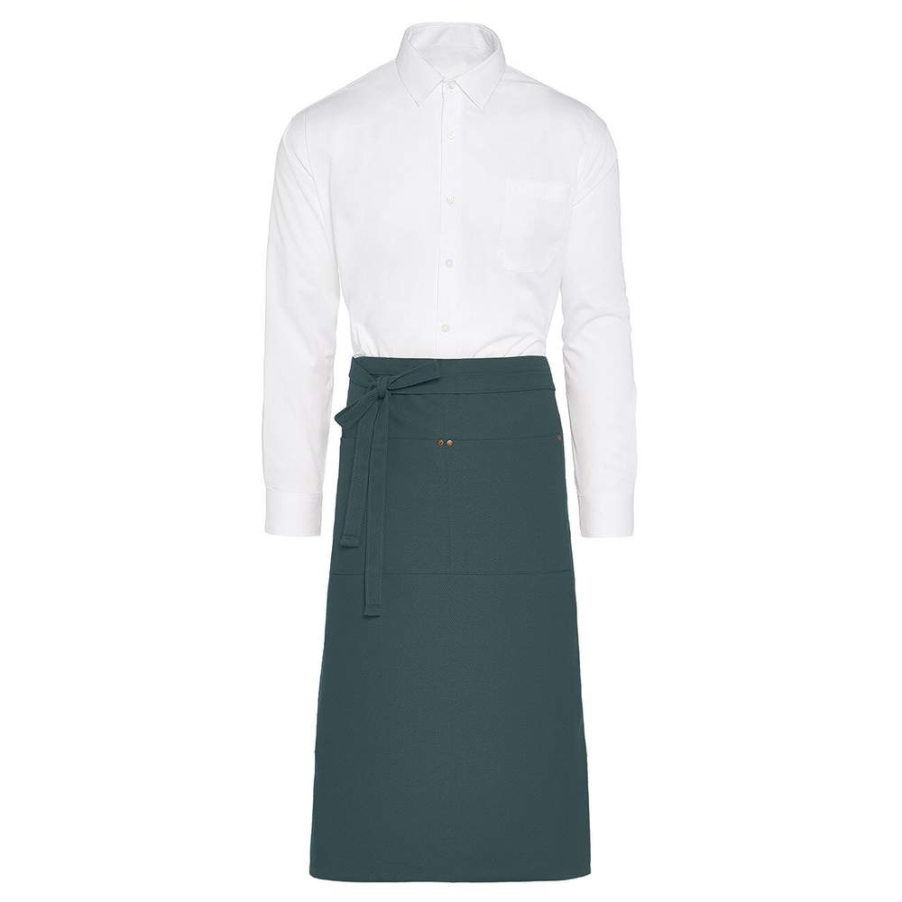 Grembiule in tela di cotone progettato per un uso professionale o domestico. Offre una libertà di movimento ottimale grazie alla sua lunghezza studiata e alla sua taglia comoda. La tasca centrale permette di tenere a portata di mano gli strumenti di lavoro. Le finiture curate e i rivetti in ottone antico aggiungono un tocco di eleganza discreta.
