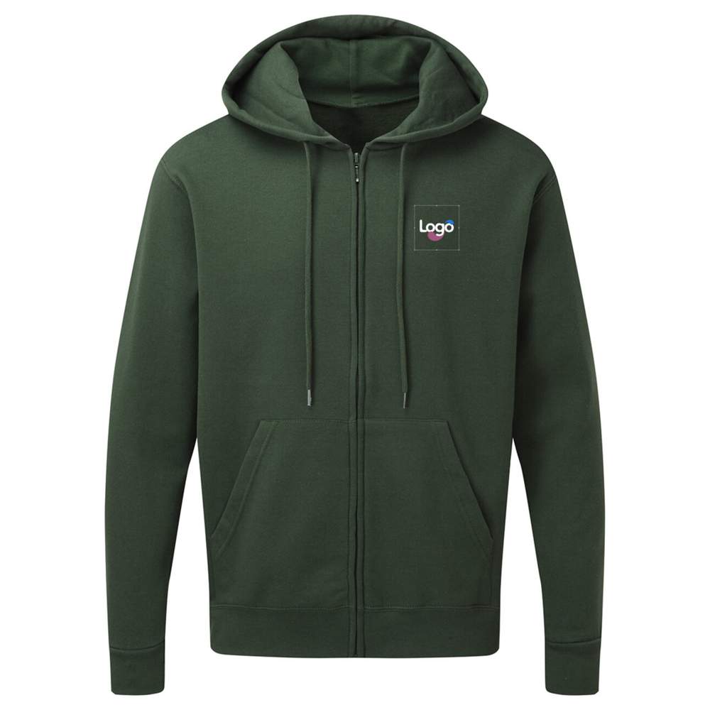 Questa felpa con cappuccio e zip per uomo offre un comfort ottimale e uno stile casual. La sua taglia classica e le tasche kangourou la rendono un abbigliamento versatile, perfetto per ogni occasione. La cerniera discreta e le maniche set-in aggiungono un tocco di eleganza. I bordi a coste ai polsi e alla vita assicurano una vestibilità confortevole, mentre le cuciture laterali valorizzano la silhouette. L'interno rasato offre una morbidezza ineguagliabile. Questa felpa è anche personalizzabile con ricamo, permettendoti di aggiungere il tuo logo, il tuo visivo o qualsiasi altro elemento grafico per un look unico e personalizzato.