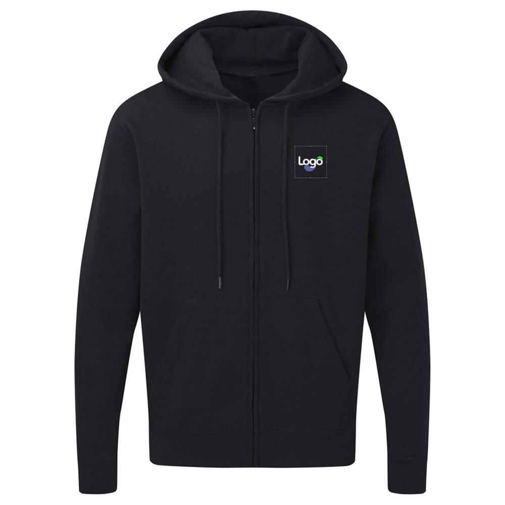 Questa felpa con cappuccio e zip per uomo offre un comfort ottimale e uno stile casual. La sua taglia classica e le tasche kangourou la rendono un abbigliamento versatile, perfetto per ogni occasione. La cerniera discreta e le maniche set-in aggiungono un tocco di eleganza. I bordi a coste ai polsi e alla vita assicurano una vestibilità confortevole, mentre le cuciture laterali valorizzano la silhouette. L'interno rasato offre una morbidezza ineguagliabile. Questa felpa è anche personalizzabile con ricamo, permettendoti di aggiungere il tuo logo, il tuo visivo o qualsiasi altro elemento grafico per un look unico e personalizzato.