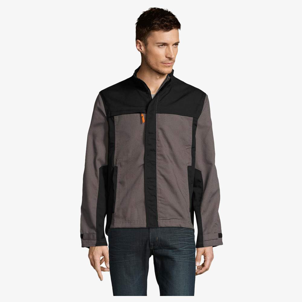 Giacca da lavoro uomo bicolore. Collo alto. Chiusura con zip e patta di protezione. 3 tasche con zip. Polsini regolabili. Cordoncino di regolazione interno. Passepoil riflettente sulla schiena e sulle maniche. Etichetta identità interna ricamata. Possibilità di personalizzazione con ricamo per aggiungere il proprio logo o il proprio visivo.