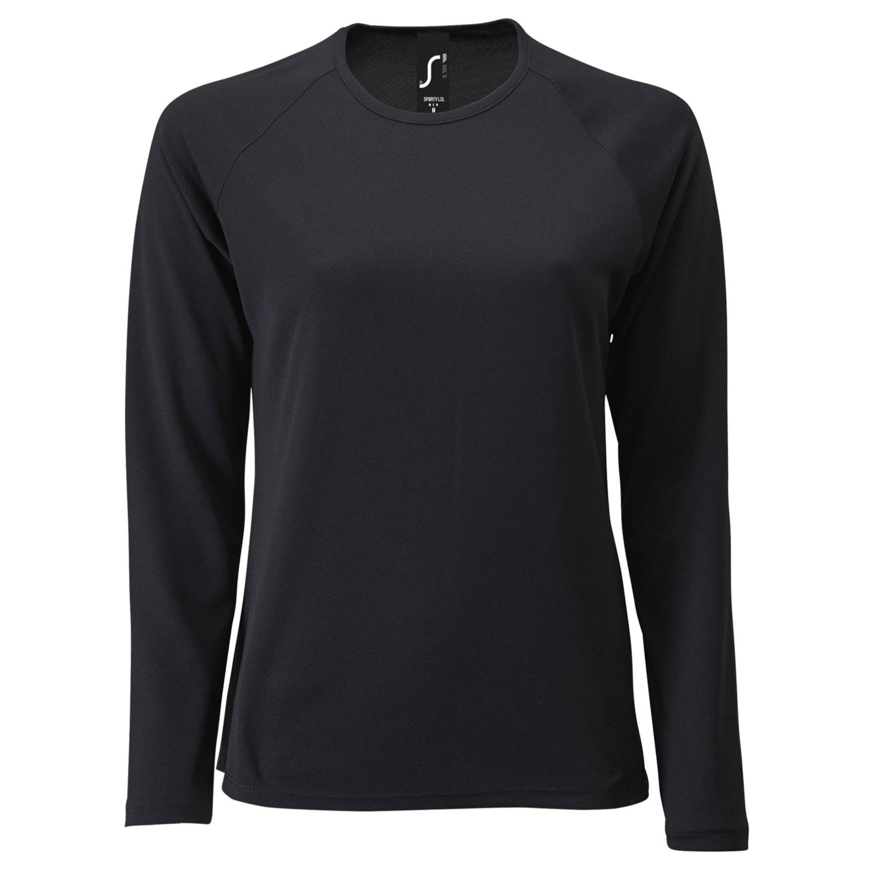 02072 - Maglietta a maniche lunghe Sporty lsl donne in poliestere mesh 02072 - noir