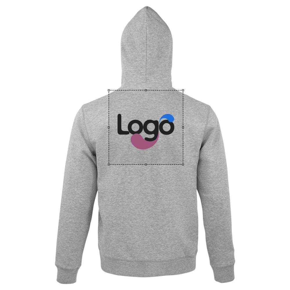 Giacca con cerniera uomo con cappuccio. Maniche montate. 2 tasche a marsupio, taglio cucito. Cappuccio imbottito con cordone di serraggio tono su tono. Polsi e fondo in orlo costiero 2x2. Mezzaluna all'interno del colletto. Fascia di pulizia interno collo. 80% cotone Ringspun 20% poliestere. Interno grattugiato. Esterno 100% cotone. Possibilità di personalizzazione in ricamo o con il tuo logo.
