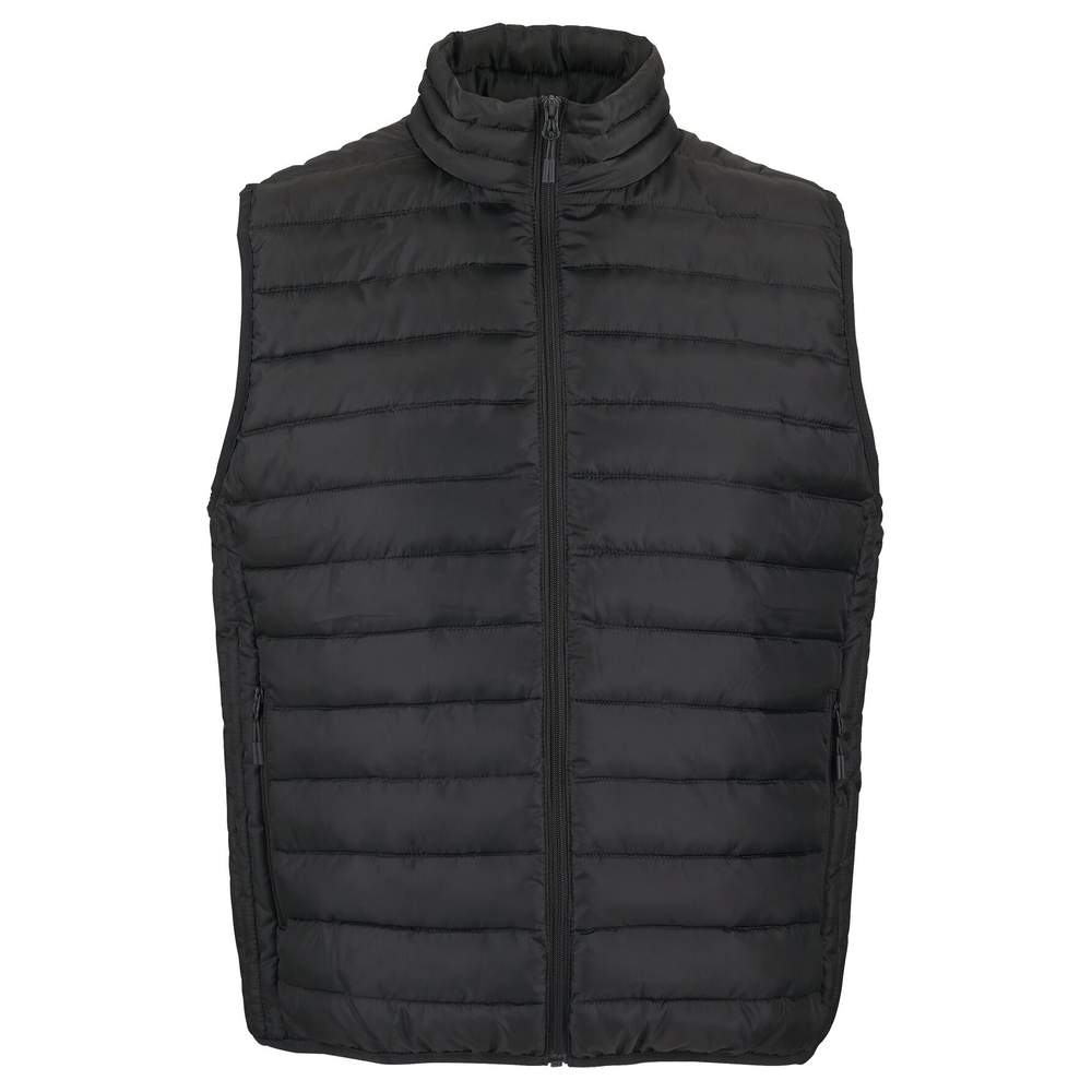 Giacca leggera senza maniche per uomo. Apertura principale e tasche laterali con zip in nylon tono su tono. Cursori in metallo tono su tono con zip tirante fantasia nero. Colletto alto. Basso del vestito e delle maniche con bietola elastica tono su tono. Sacca di conservazione.