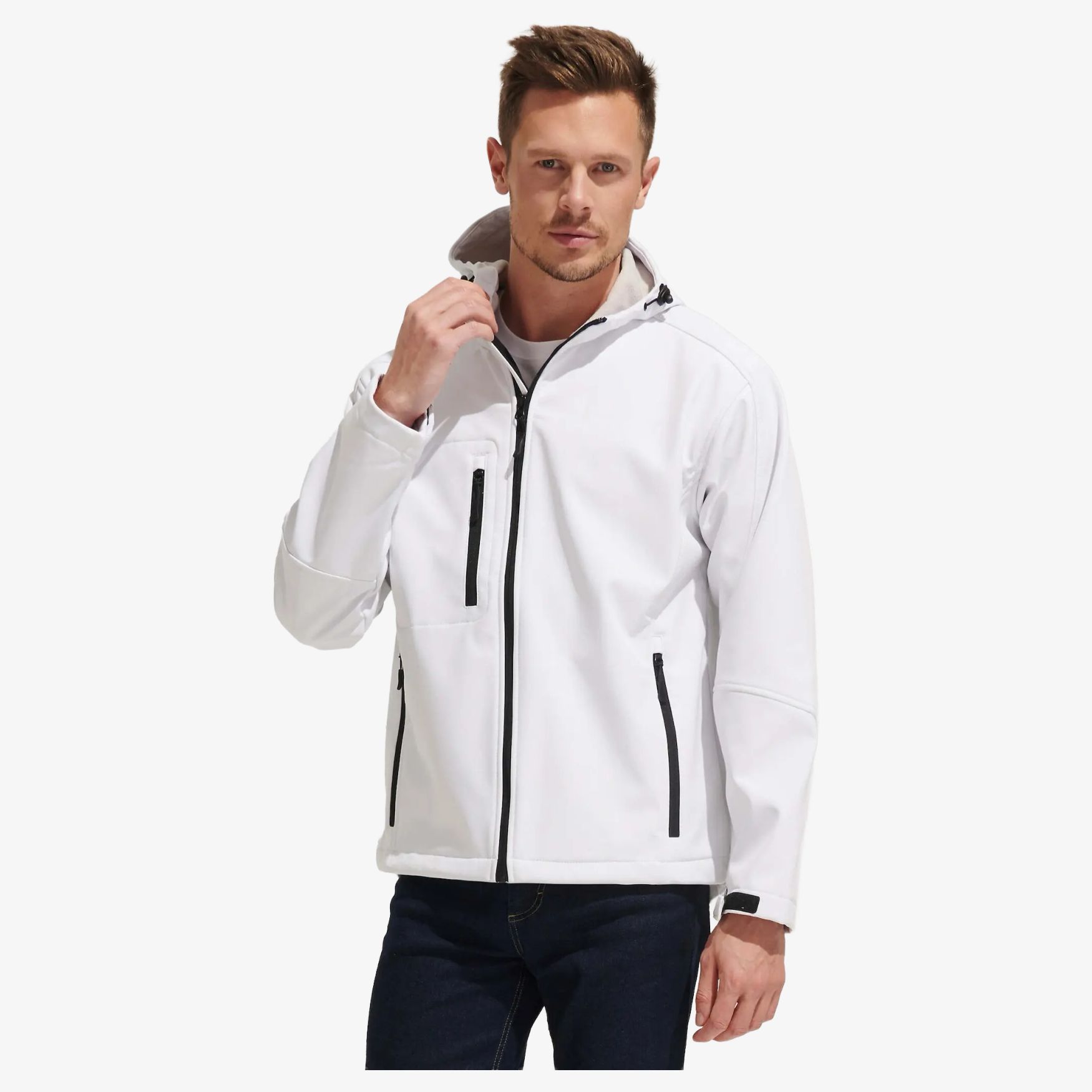 Softshell 3 strati da uomo con cappuccio che offre protezione ottimale contro le intemperie. La sua costruzione combina uno strato esterno in poliestere ed elastan, una membrana TPU impermeabile e traspirante di 8000 mm, e un rivestimento interno in micro-polar per un maggiore comfort termico. Ha due tasche laterali e una tasca sul petto con zip per uno stoccaggio pratico. Il cordone regolabile alla vita e i polsini regolabili con nastro auto-aggancianti consentono un adattamento personalizzato. Il cappuccio con cordone regolabile offre protezione aggiuntiva contro vento e pioggia.