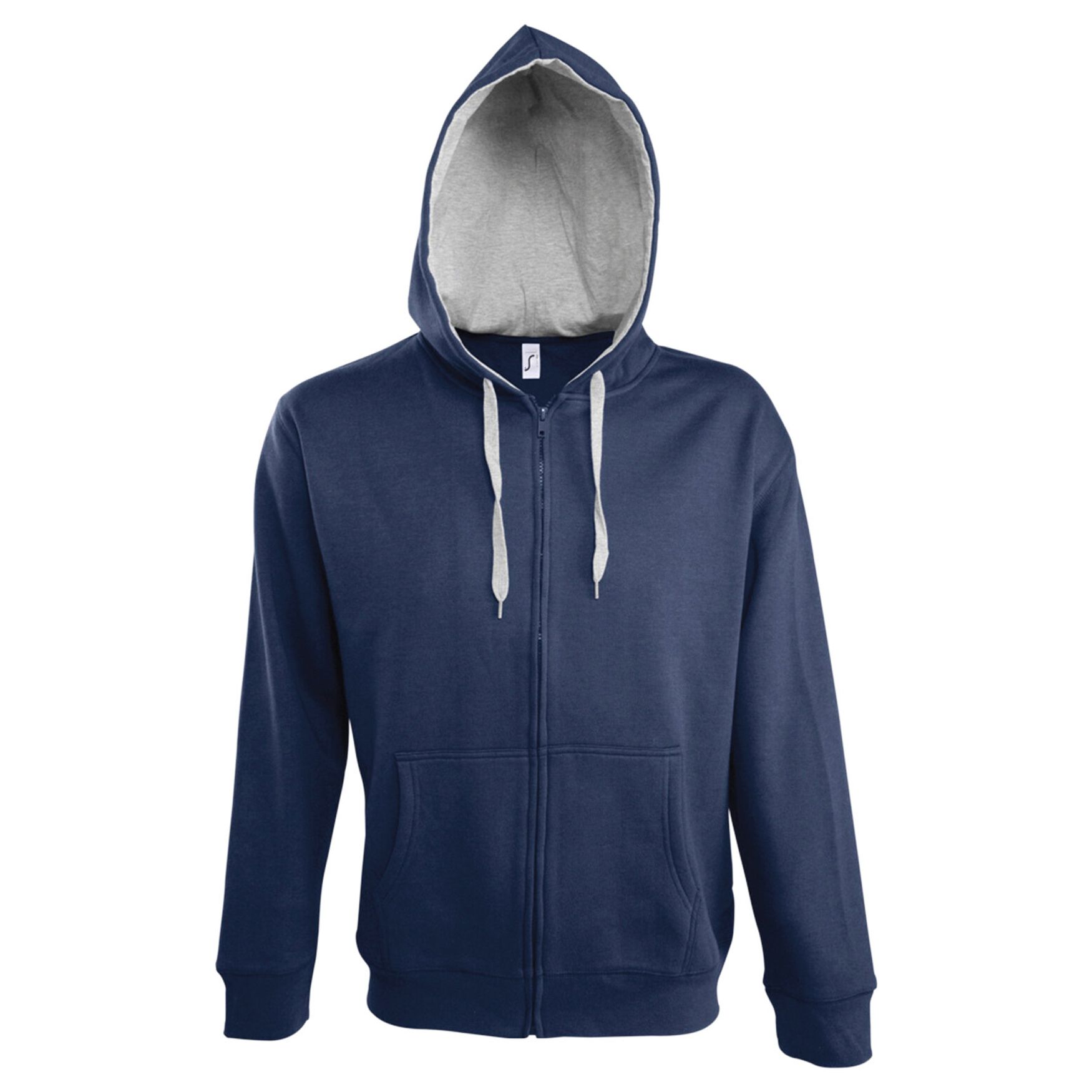 Giacca con zip uomo bicolore, dotata di cappuccio imbottito contrastante. L'interno è realizzato in pile grattugiato per maggiore comfort. Presenta maniche montate e due pratiche tasche marsupio. Il fondo e i polsini sono in costina elastica per una vestibilità ottimale. La composizione del tessuto è un mix di 50% cotone e 50% poliestere.