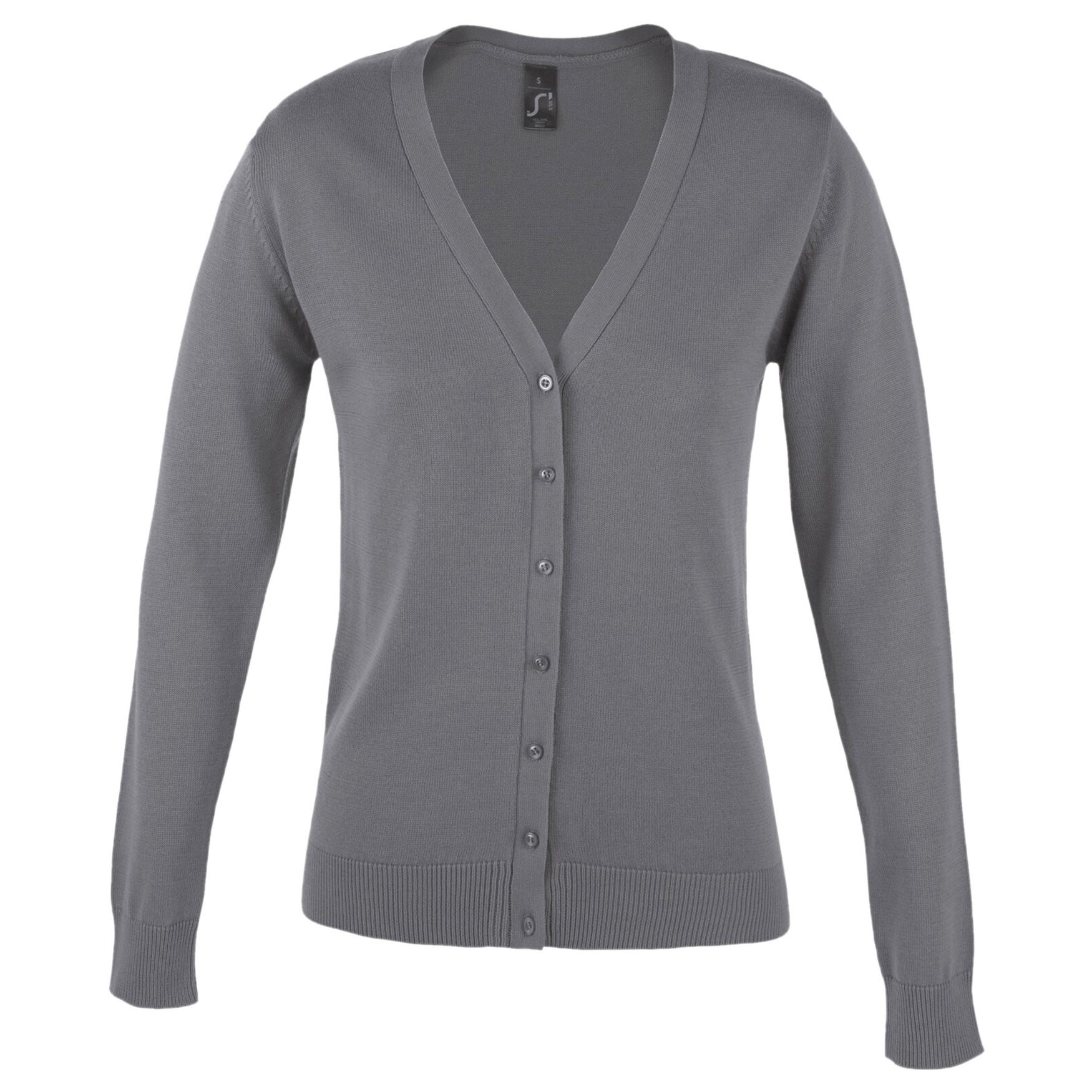 Gilet da donna abbottonato colletto a V maglione tricot jersey 280 composto dal 50% cotone e il 50% di acrilico. Questo gilet presenta uno stile classico con maniche montate e polsini e fondo in costine 1x1 con filo elastan