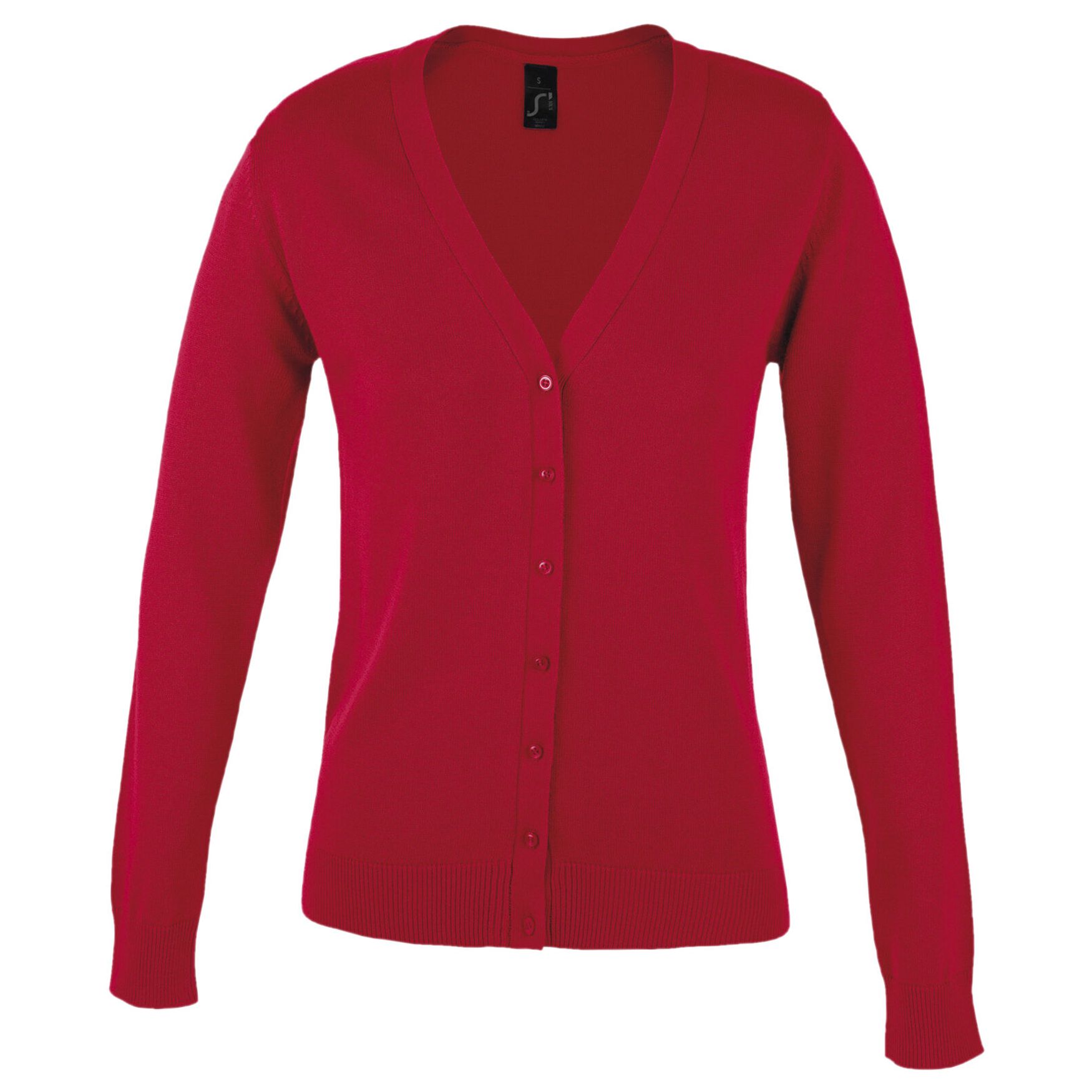 Gilet da donna abbottonato colletto a V maglione tricot jersey 280 composto dal 50% cotone e il 50% di acrilico. Questo gilet presenta uno stile classico con maniche montate e polsini e fondo in costine 1x1 con filo elastan