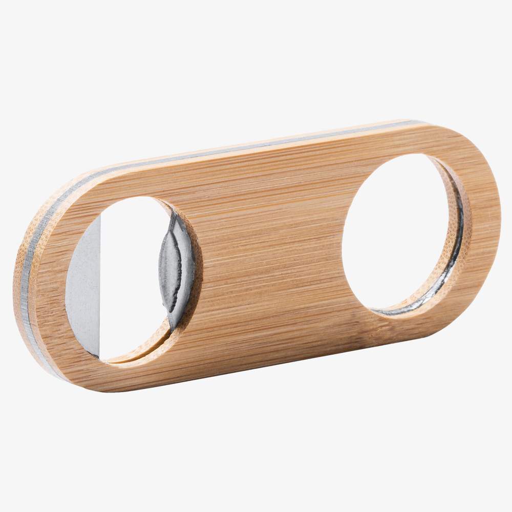 Questo apertura bottiglie compatta combina l'estetica naturale del bambù con la robustezza dell'acciaio inossidabile. Il suo design ergonomico assicura una presa comoda e una facile apertura delle bottiglie. La matrice superiore integrata permette di appenderlo facilmente. Fabbricato con materiali durevoli, questo apertura bottiglie è una scelta rispettosa dell'ambiente. È anche possibile personalizzarlo con il vostro logo, un'immagine o un messaggio specifico, rendendolo un regalo promozionale ideale o un accessorio unico per la vostra azienda.