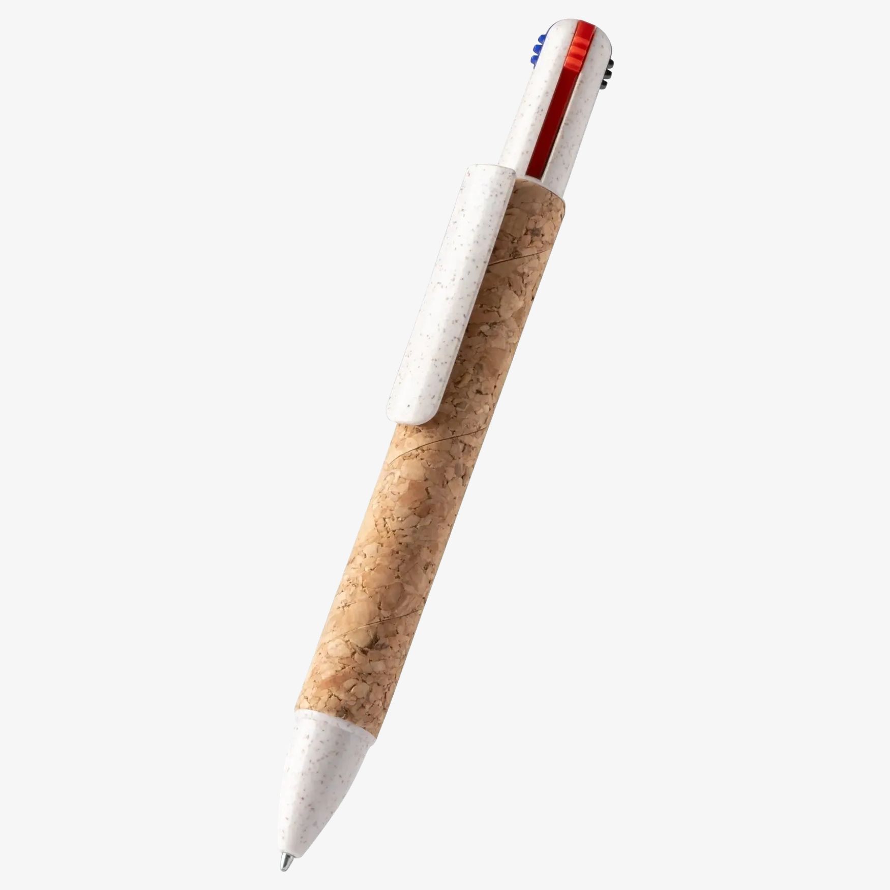 La penna a sfera retrattile Corles a 4 inchiostri è adatta alla scrittura quotidiana, con selezione di inchiostro blu, rosso e nero. Struttura in sughero e fibre di grano.