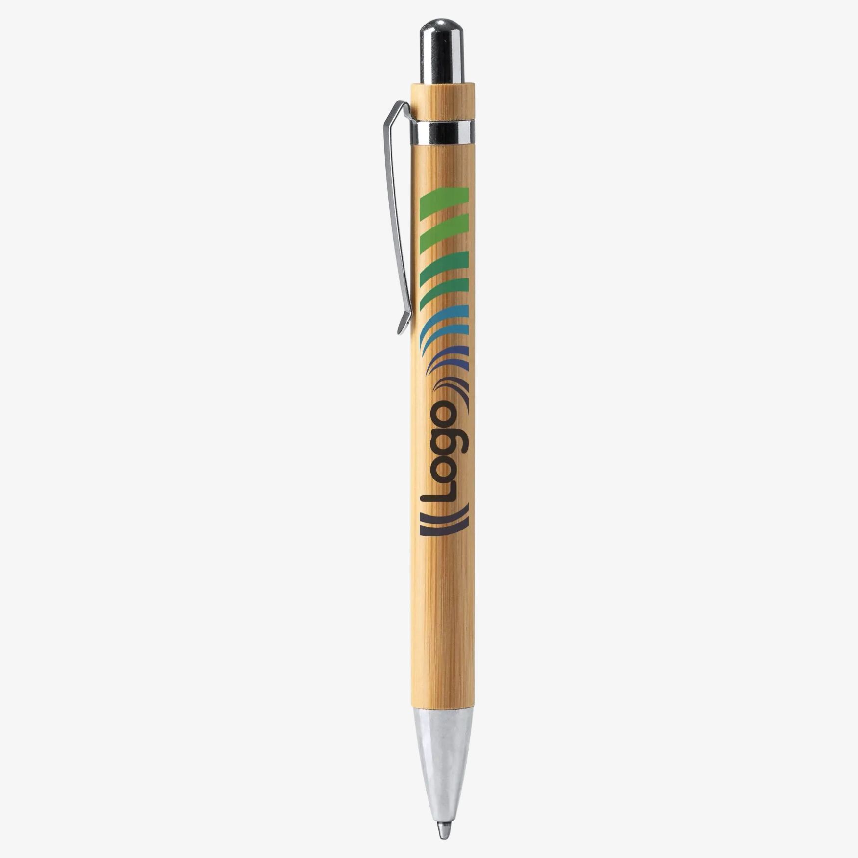 La penna Davos unisce l'eleganza naturale del bambù alla robustezza del metallo. Il suo design essenziale e il meccanismo a pulsante la rendono uno strumento di scrittura piacevole e pratico. L'inchiostro blu garantisce una scrittura fluida e leggibile. Questa penna è un'opzione ecologica e responsabile per le tue esigenze quotidiane.
