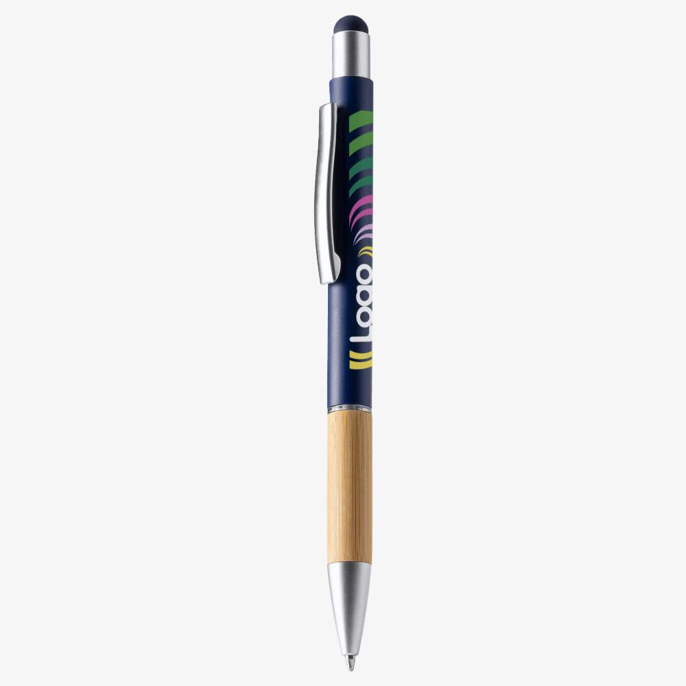 Questo stilo a sfera unisce eleganza e funzionalità. La sua finitura opaca in metallo, abbinata a una impugnatura in bambù, offre un'esperienza di scrittura confortevole e raffinata. Dotato di una punta tattile, è compatibile con gli schermi touch. L'inchiostro blu garantisce una scrittura fluida e leggibile. Questo stilo è inoltre personalizzabile, il che lo rende un regalo aziendale ideale o un supporto di comunicazione efficace.
