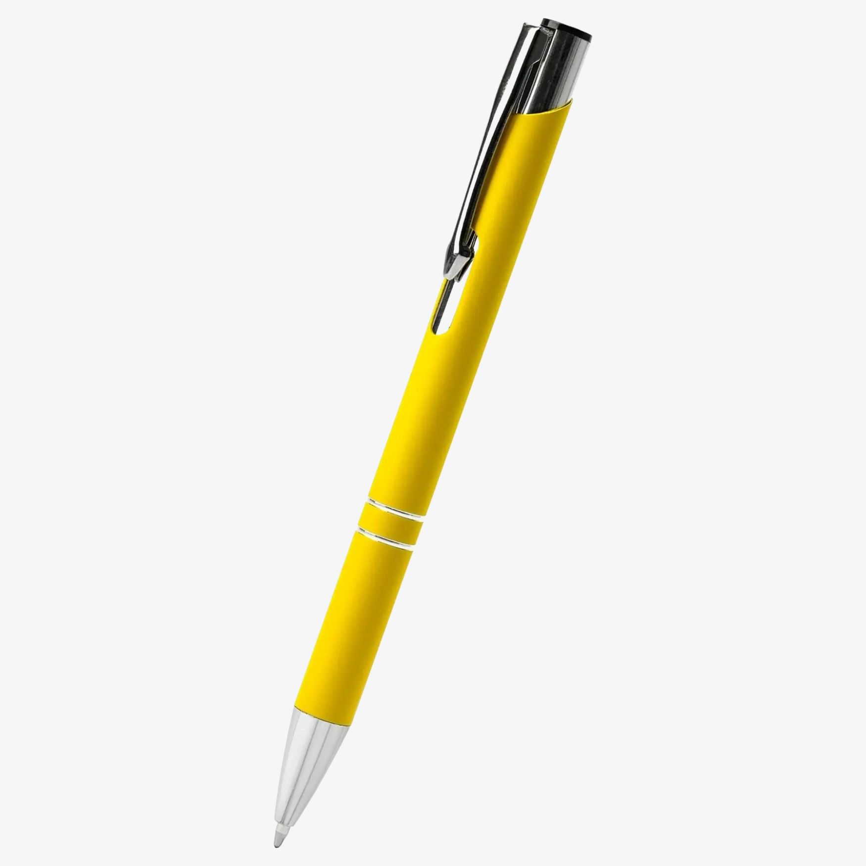 La penna a sfera Norfolk con corpo in metallo soft-touch e pulsante anodizzato. Punta, clip e dettagli in metallo cromato per una presa stabile e un utilizzo quotidiano.