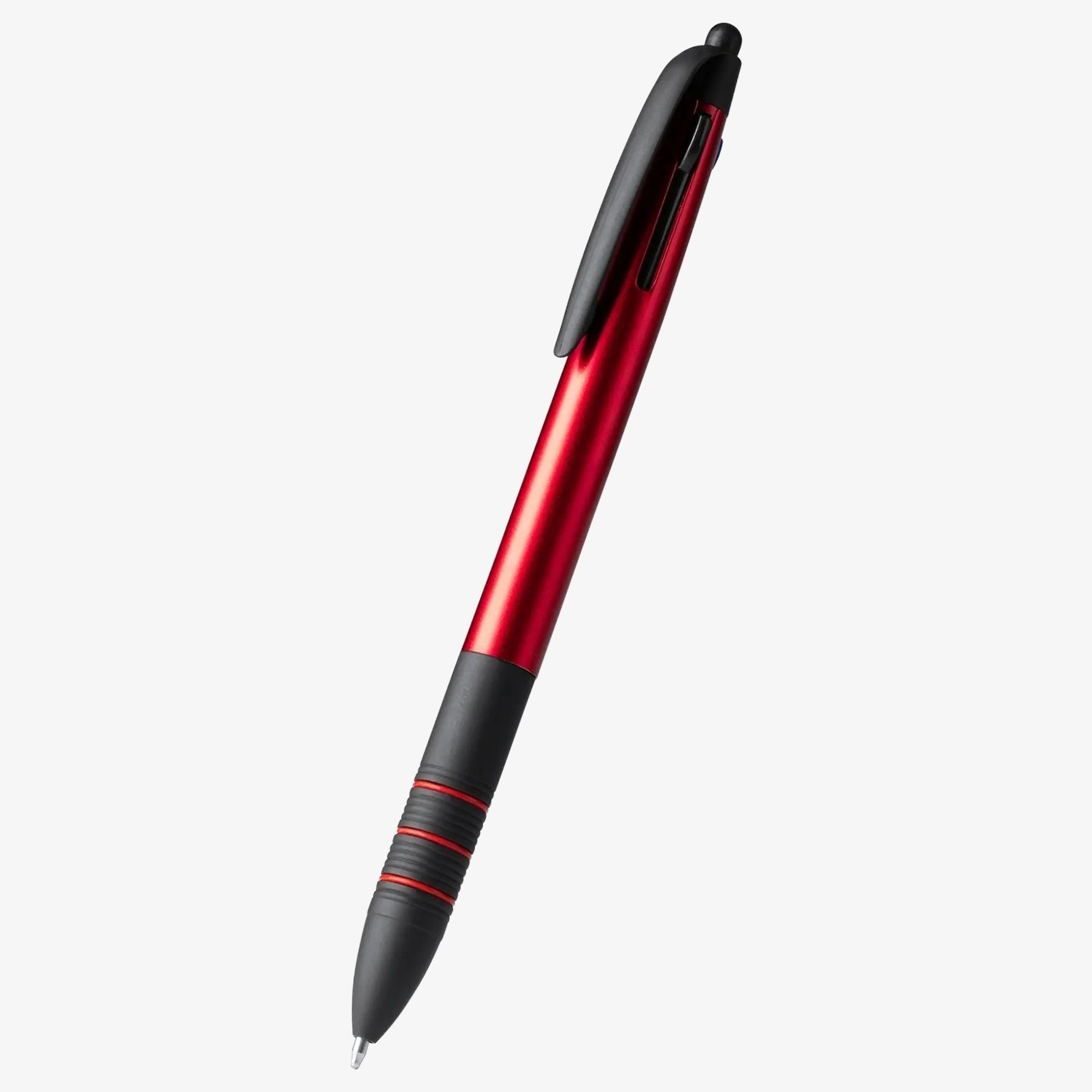 La penna a sfera retrattile Sandur a 3 inchiostri consente di alternare la scrittura in blu, nero o rosso. Corpo in ABS con impugnatura morbida e puntatore touch per l’uso su schermo tattile.
