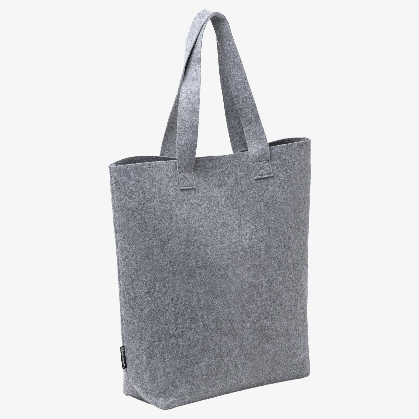 La borsa shopping SAFIRA in feltro riciclato, finitura mélange, con manici rinforzati da 70 cm. Formato adatto al trasporto di effetti personali nella quotidianità.