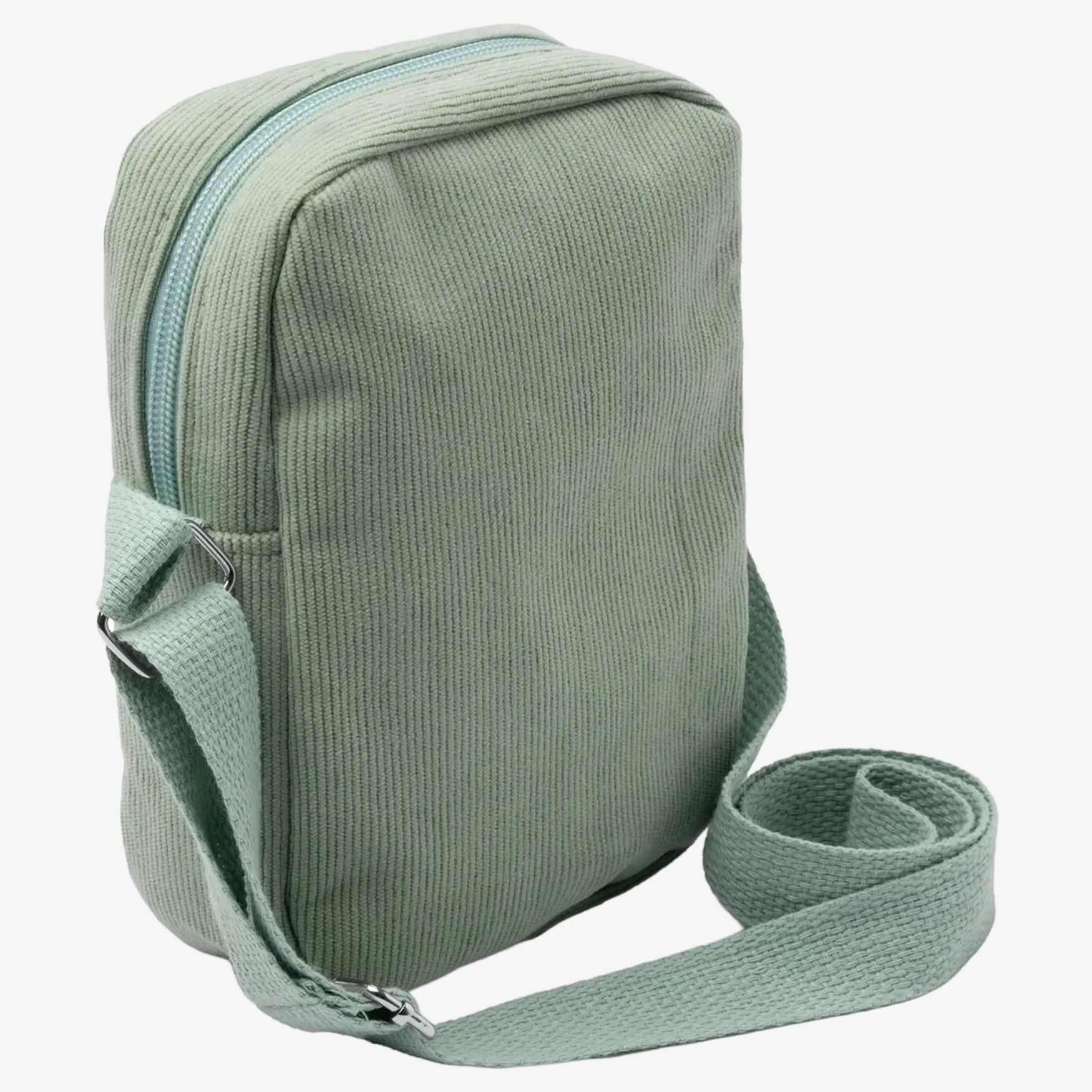 La borsa a tracolla Kapi in velluto a coste con chiusura a zip e tracolla regolabile è adatta al trasporto di piccoli effetti personali. Formato compatto 14 x 19 x 6 cm.