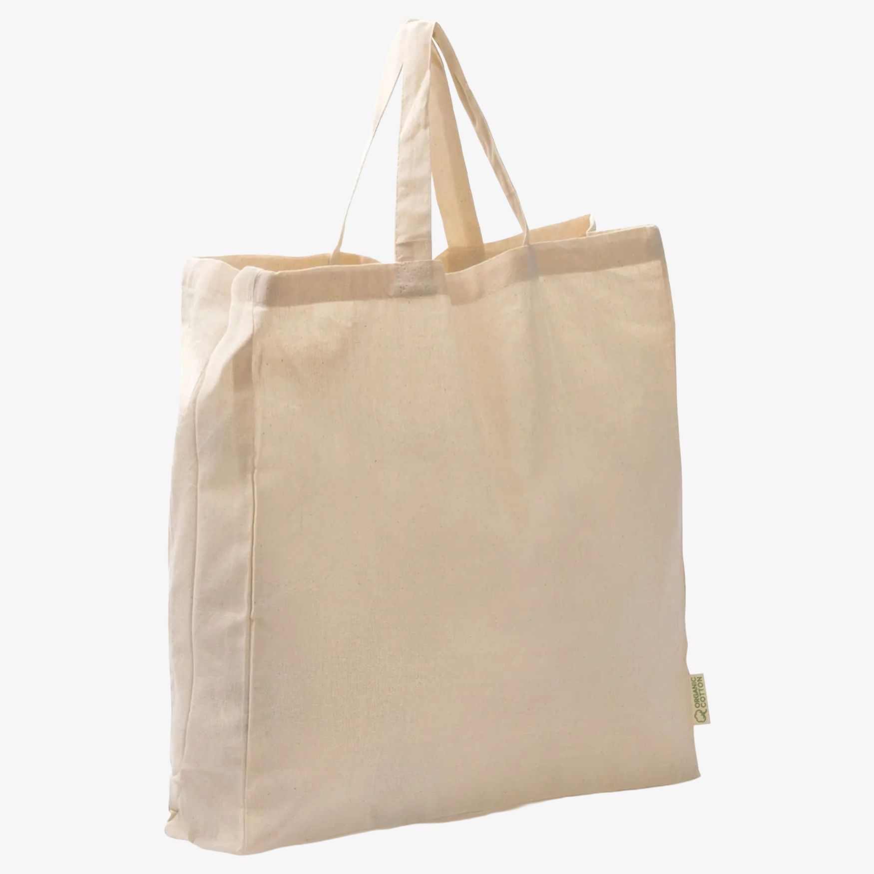 La borsa shopping NARBONA in cotone biologico con soffietto e manici corti rinforzati 35 cm. Formato adatto al trasporto di oggetti di uso quotidiano. Dimensioni: 40 x 40 x 10 cm.