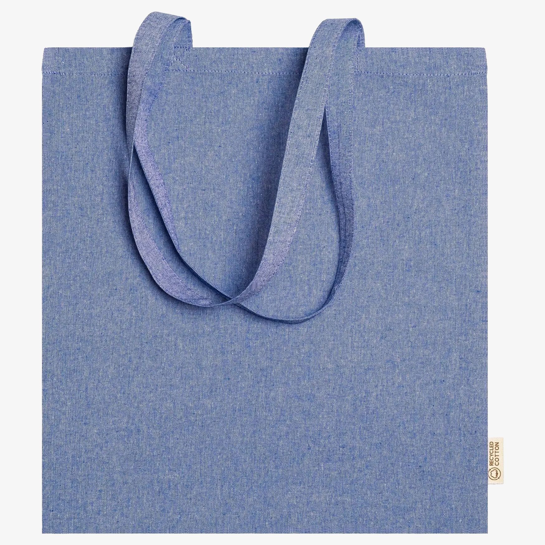 La borsa shopping RIVOLI in cotone riciclato con finitura marmorizzata e manici lunghi 70 cm. Formato 38 x 42 cm, adatta al trasporto di oggetti di uso quotidiano.