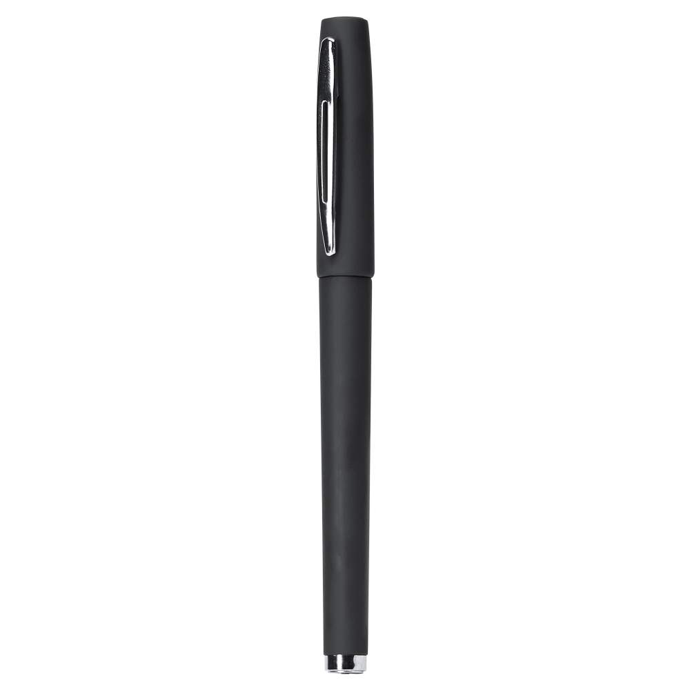 Penna a palla rotolante con clip e punta in metallo. Corpo e cappuccio di un solo colore morbido al tatto. Ricarica jumbo da 0,7 mm con inchiostro blu.
