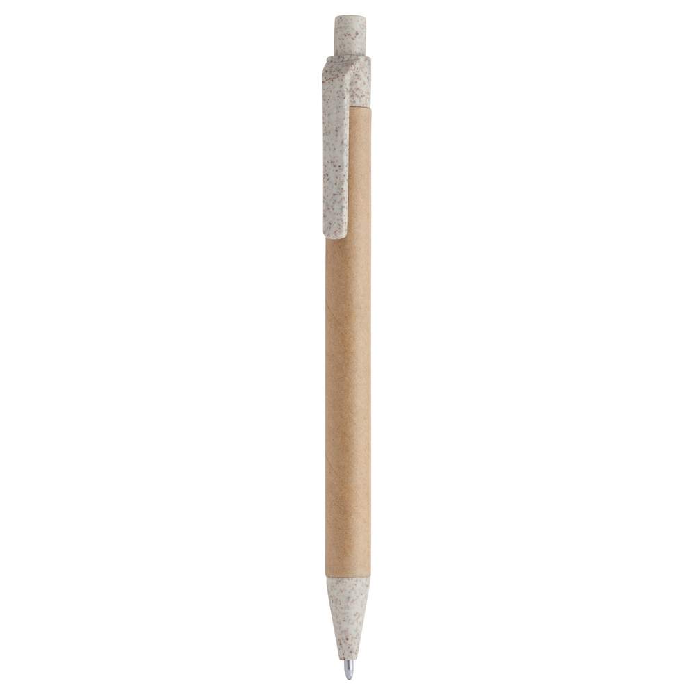 La penna Grove è una soluzione ecologica e personalizzabile per i tuoi eventi e campagne di comunicazione. Prodotta a partire da cartone riciclato, questa penna a pulsante è un'alternativa sostenibile alle penne tradizionali. La punta e il fermaglio sono in fibra di grano e ABS, offrendo una buona resistenza e comfort di scrittura. L'inchiostro blu assicura una leggibilità ottimale.