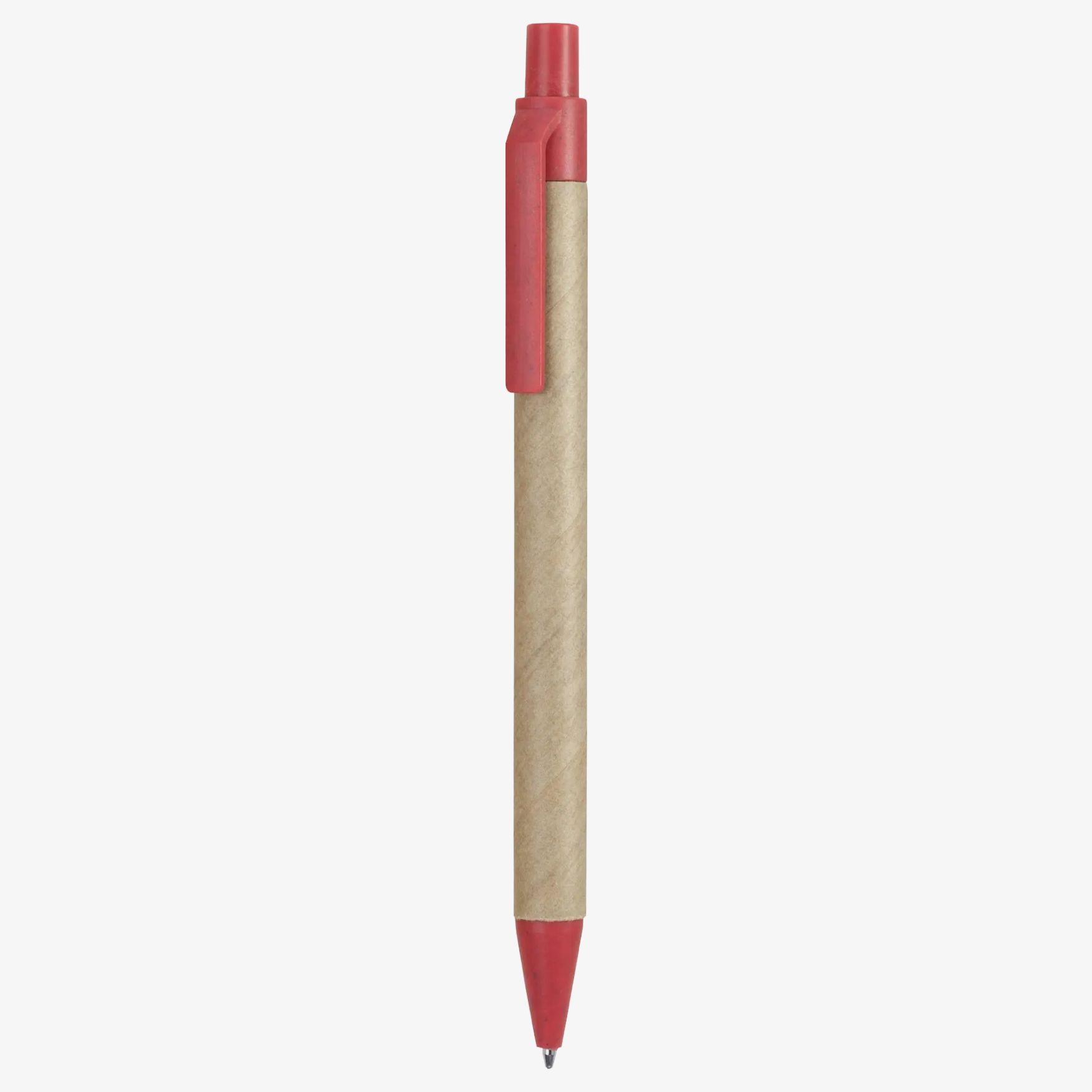 Penna a pressione in cartone riciclato. Progettata per l'uso quotidiano, questa penna combina funzionalità e rispetto per l'ambiente. La punta e il clip sono realizzati in fibra di frumento e ABS, materiali durabili e leggeri. L'inchiostro blu garantisce una scrittura fluida e leggibile.